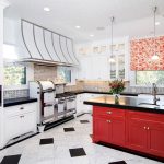 - Plăcile pătrate alb-negru așezate în diagonală pe podea vor extinde vizual volumul bucătăriei.