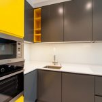 Bucătărie gri-galbenă: echilibru de culoare în interior