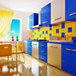 - 3.4 Bucătărie albastră-galbenă în interior: fotografii cu idei luminoase implementate