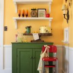 Sfat util! Cantitatea de galben din bucătărie trebuie să fie moderată. De exemplu, dacă o cască are o astfel de culoare, precum și mai multe detalii interioare, atunci este mai bine să pictați peretele într-un mod combinat, făcând partea sa inferioară (până la un metru și jumătate) galben deschis, iar partea superioară albă. Dacă tonul principal este foarte luminos, atunci este mai bine să faceți întregul perete în alb. Bucătăria galbenă ar trebui să fie distractivă, dar nu epuizantă.