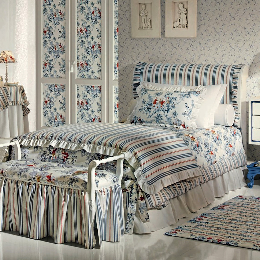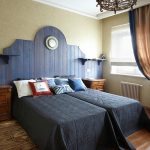 Premisele în stil Provence ar trebui să fie saturate de lumină și confort, să radieze romantism. O astfel de cameră este o stilizare a provinciilor franceze, așa că tăblia paturilor necesită o mulțime de textile cu imprimeuri florale în culori deschise. Mobilierul în sine ar trebui să fie din lemn cu efect îmbătrânit. Tabelele realizate folosind plăci vopsite sau uși vechi se vor potrivi organic în această direcție.