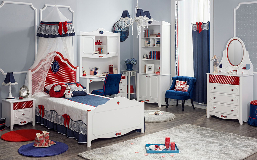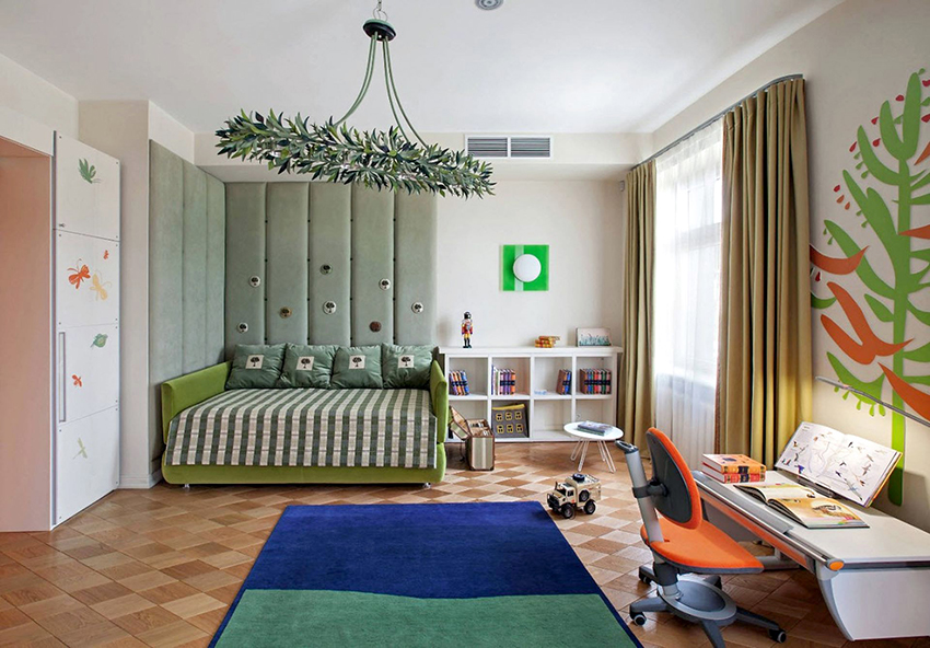 Un spate luminos va arăta bine în grădiniță, principalul lucru este că este combinat cu unul dintre elementele interioare