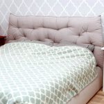 Cel mai popular spătar al patului este tăblia capitonată. Are propriile soiuri. Cea mai simplă opțiune este decorarea tăbliei cu perne suspendate. Pentru a face acest lucru, este suficient să fixați conducta pe perete și să coaseți bucle speciale de fixare pe perne. Acest spătar este destul de practic, deoarece pernele pot fi îndepărtate și capacele pot fi spălate.