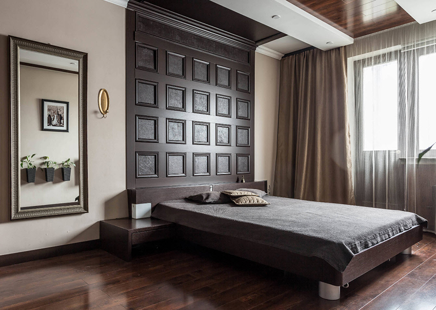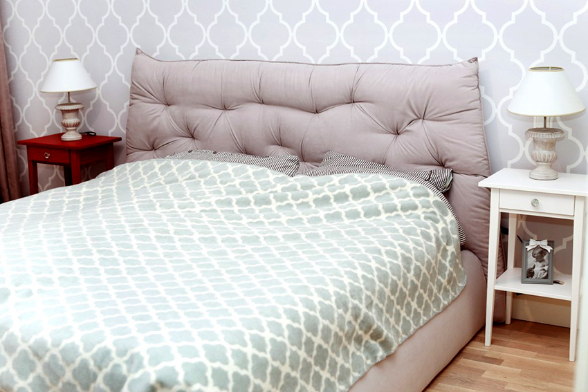 - Nu este recomandat să folosiți materiale de calitate slabă: tăblia nu este un detaliu pe care merită să îl salvați. Nuanța este importantă, deoarece spătarul atrage atenția principală din punct de vedere estetic. În plus, o persoană petrece o treime din zi în această cameră, astfel încât materialul trebuie să fie ecologic. Este important ca acesta să fie și durabil, mai ales când vine vorba de tapițeria din țesături.