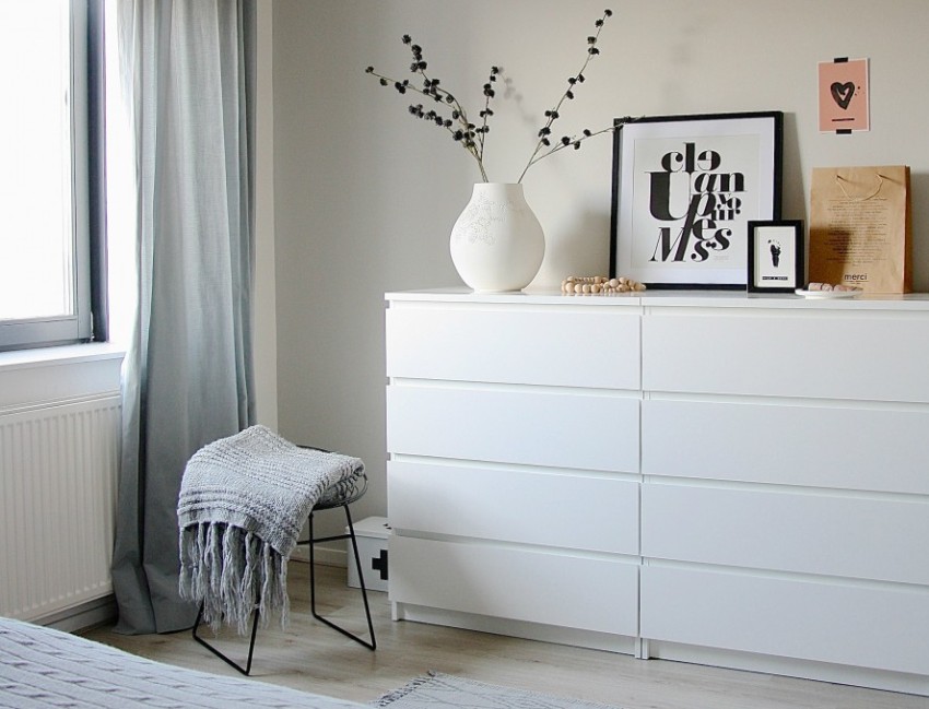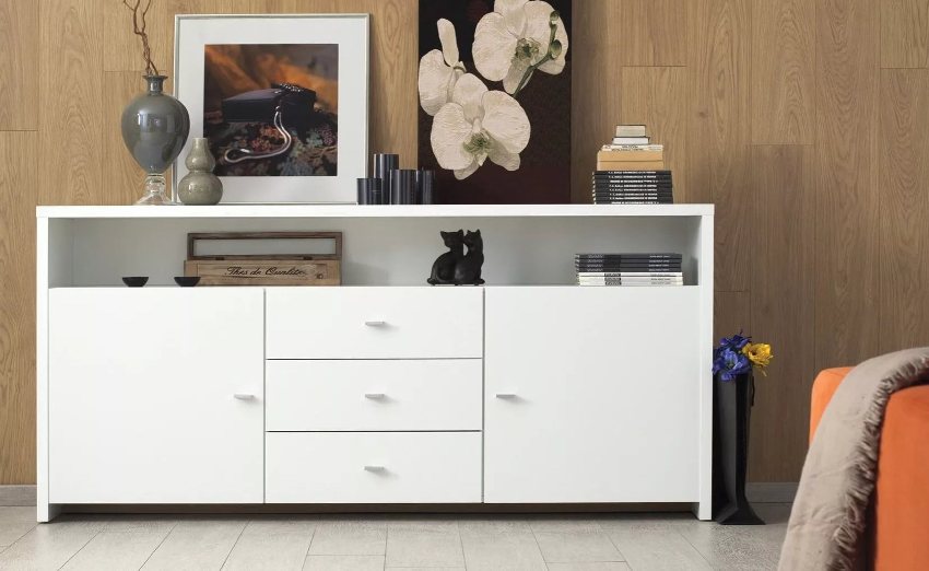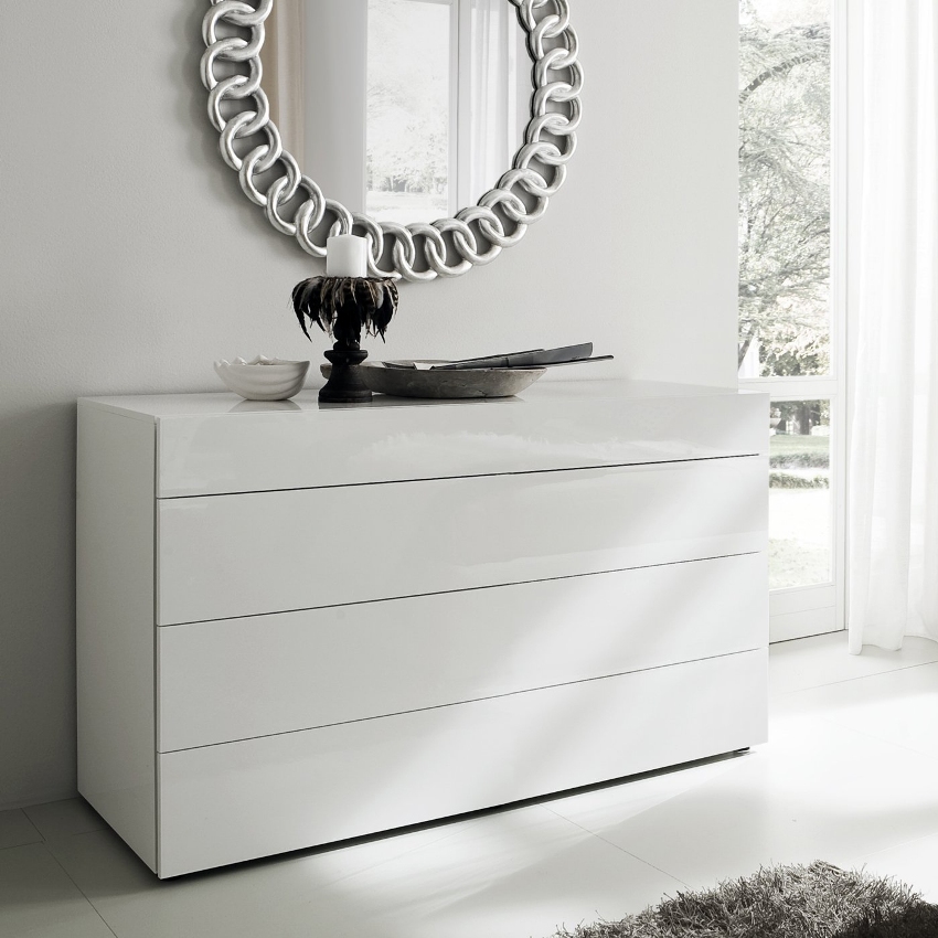 Comoda albă va completa frumos interiorul unei camere mici; lângă ea, obiectele vor căpăta o expresivitate deosebită.