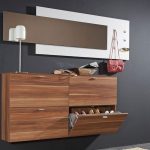 Comodă pentru pantofi - construcție hibridă. Are o asemănare pur externă cu o comodă - dimensiuni similare și împărțire pe niveluri. Conținutul interior al comodei pentru pantofi de pe hol este alcătuit din rafturi cu cadru care pot fi deschise prin balansarea ușilor. În zona superioară a acestor comode, poate exista un sertar în care este convenabil să depozitați produsele de îngrijire a pantofilor.