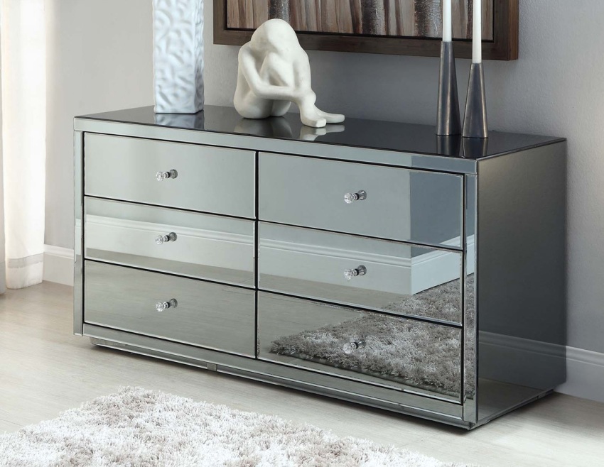 În fotografia dresserelor cu oglindă pe hol, sunt prezentate o mare varietate de modele. Acestea sunt structuri monolitice, în care partea oglinzii este continuarea superioară a mobilierului și elemente separate. Acestea din urmă sunt mai des decorate în același stil, ceea ce sporește efectul decorativ și decorează interiorul. Există opțiuni în care oglinda nu are cadru, dar forma sa în ansamblu conferă compoziției o originalitate.
