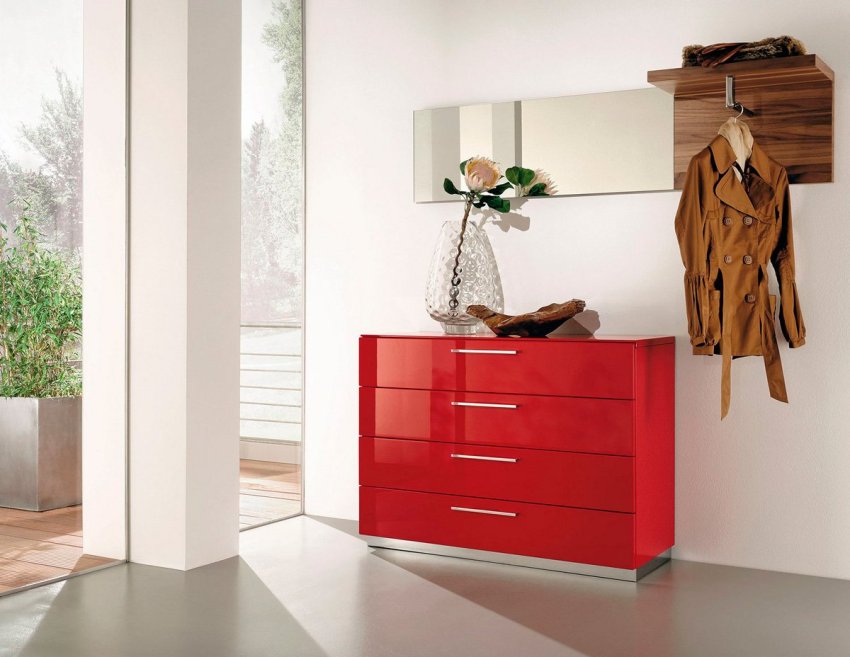 Comodă înaltă și îngustă pe hol: economie de spațiu și spațiu