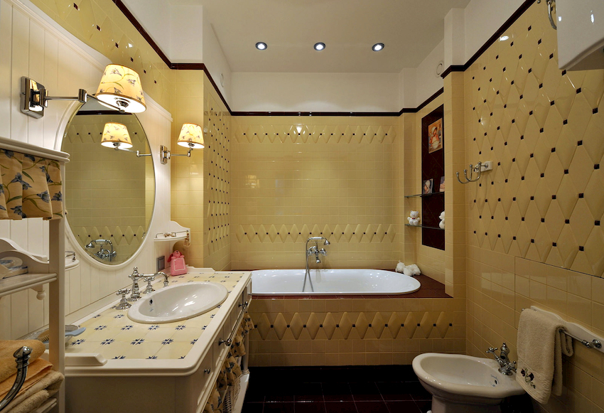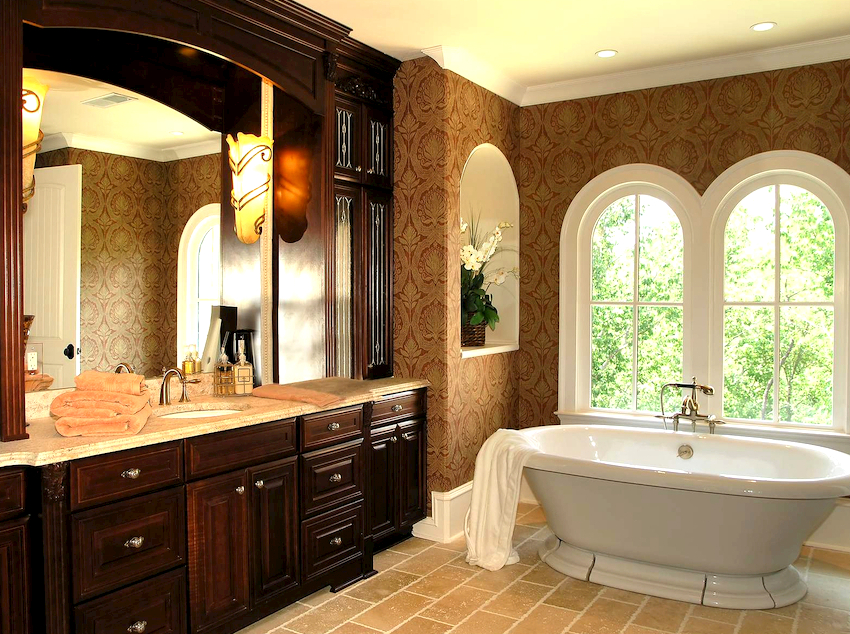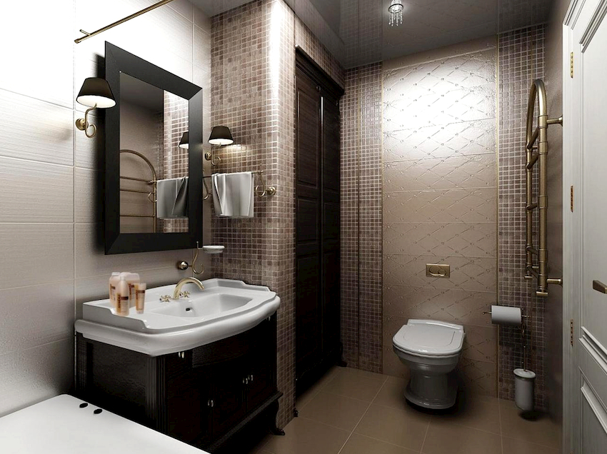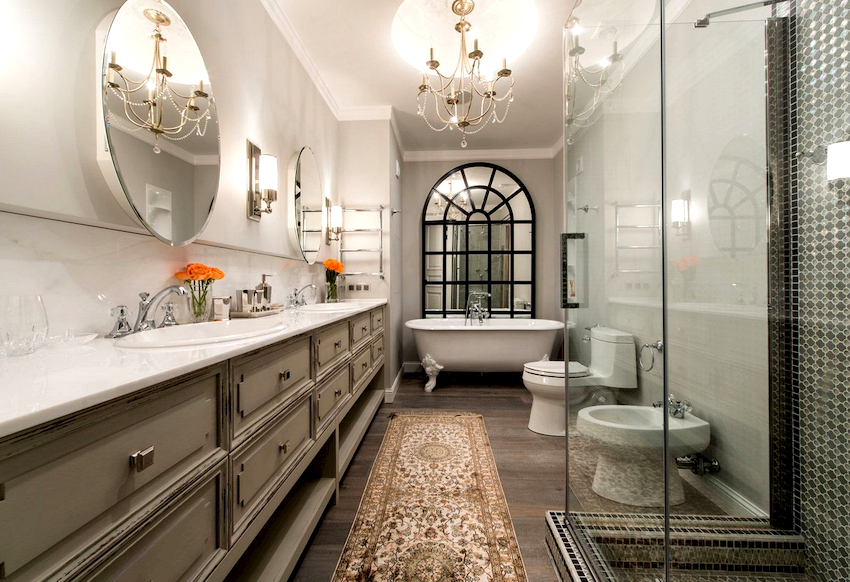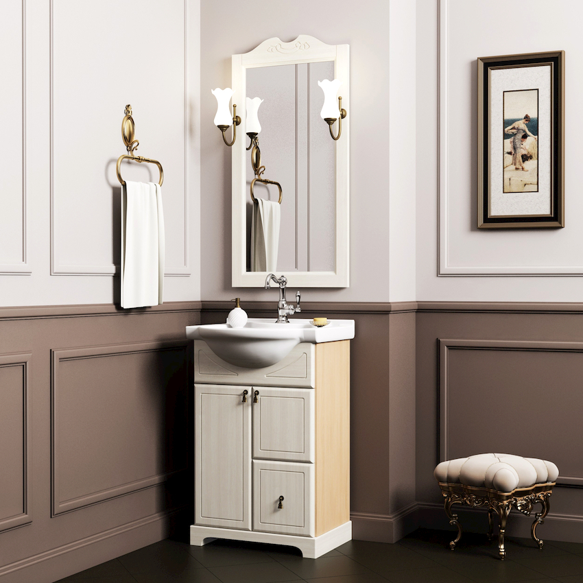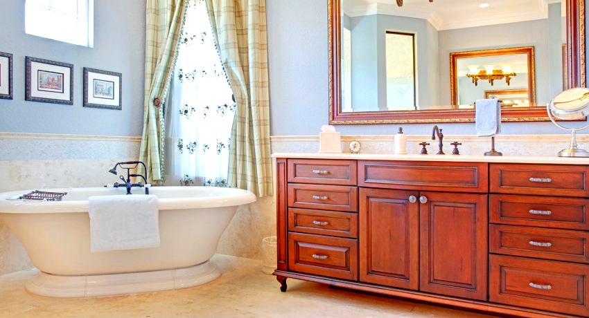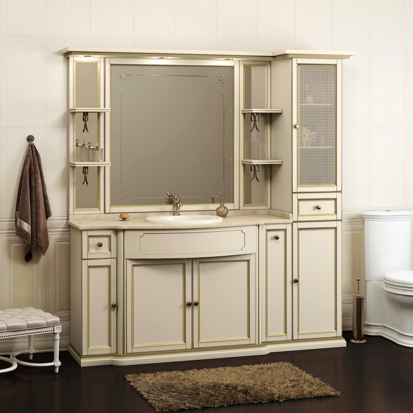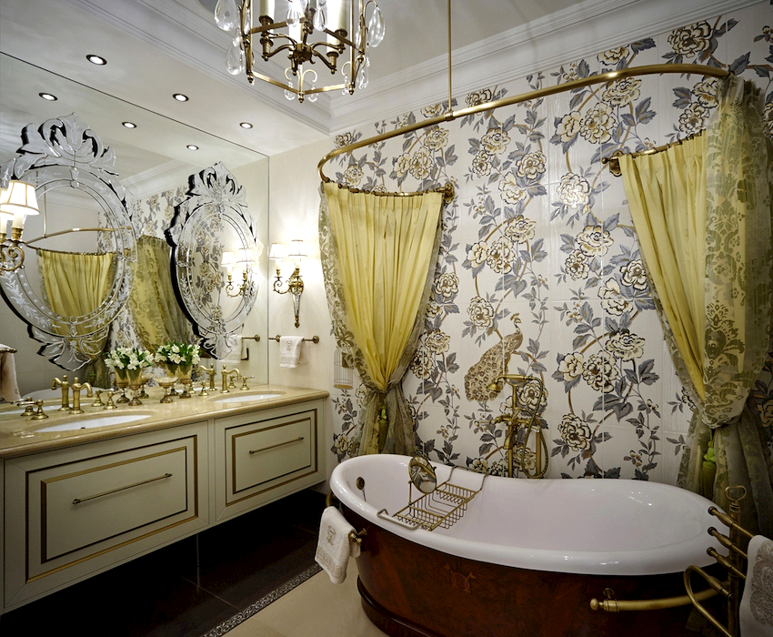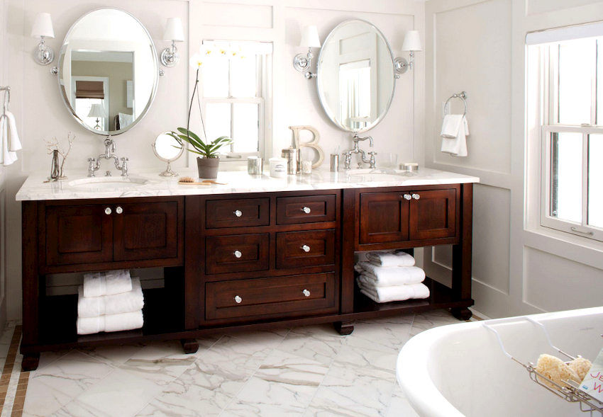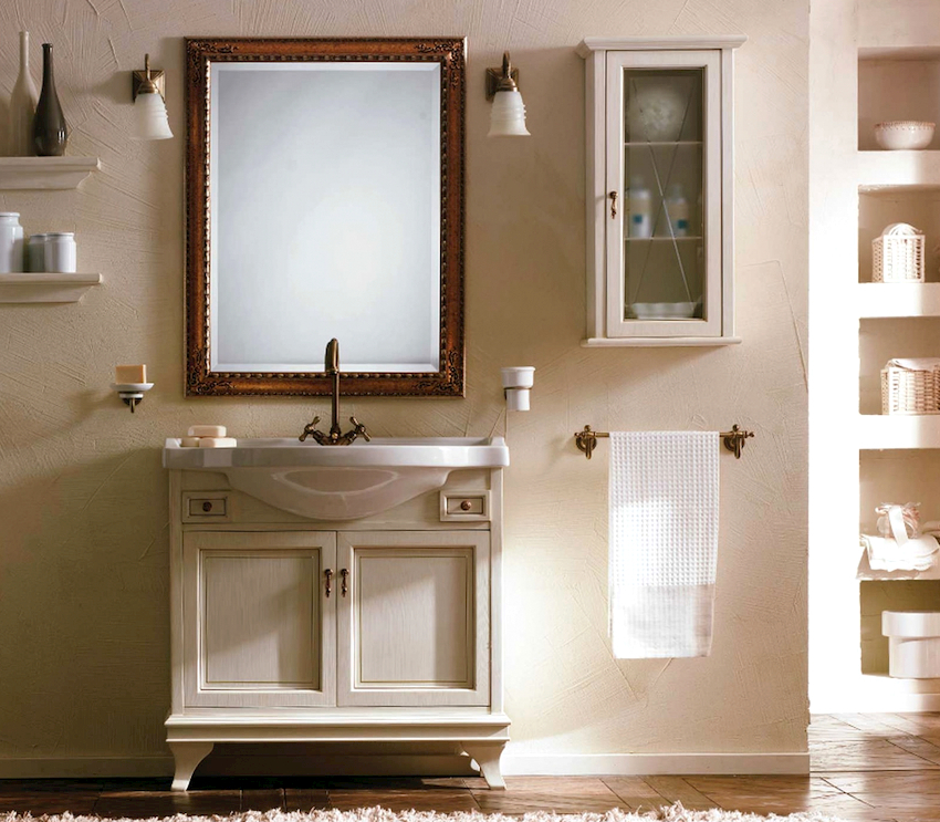 - Dimensiunile camerei. Este important ca după instalarea tuturor obiectelor, golurile dintre ele să permită mișcarea liberă prin cameră. Mobilierul clasic de baie din lemn masiv este cel mai bine lăsat pentru decorarea camerelor mari din case private sau apartamente mari.