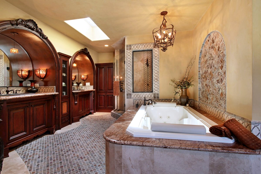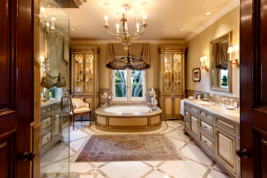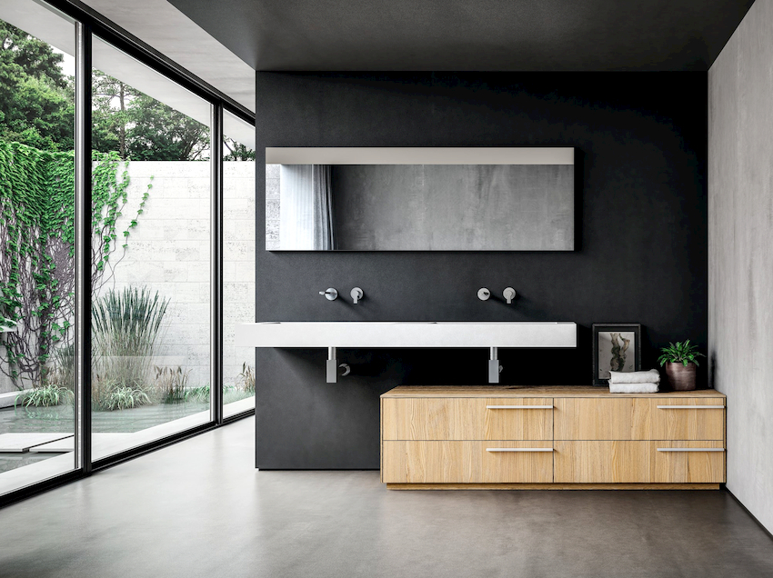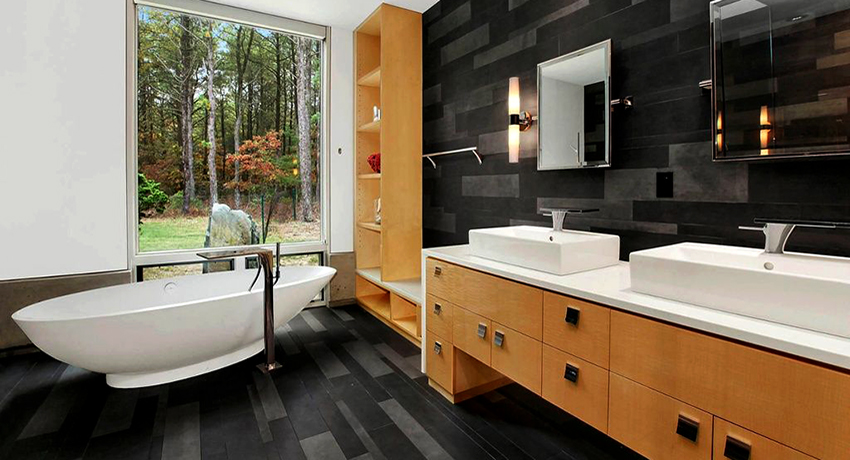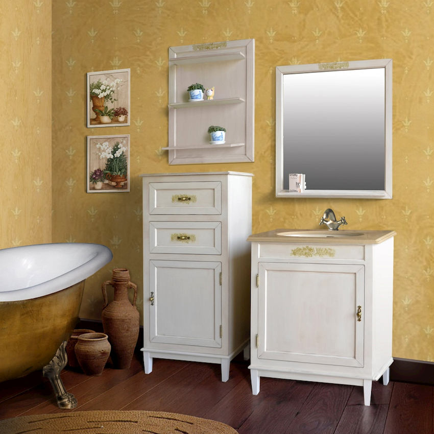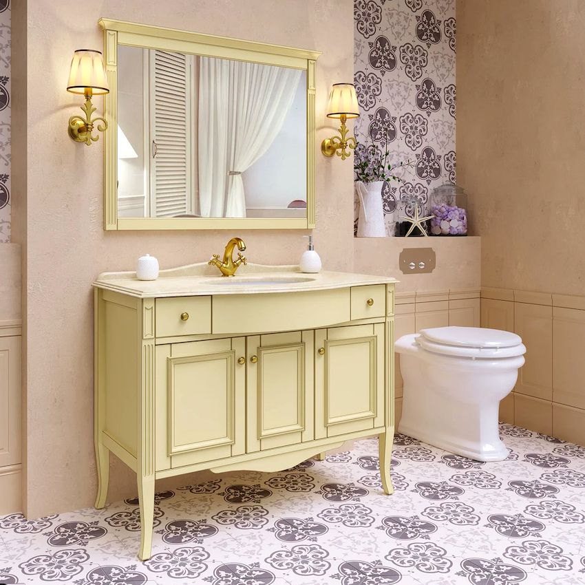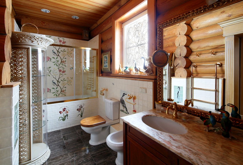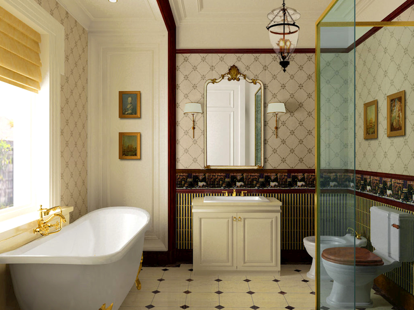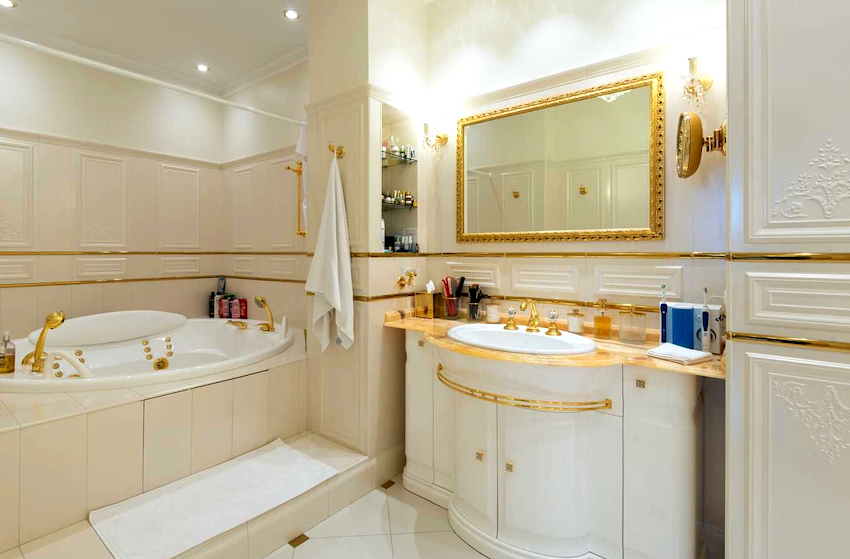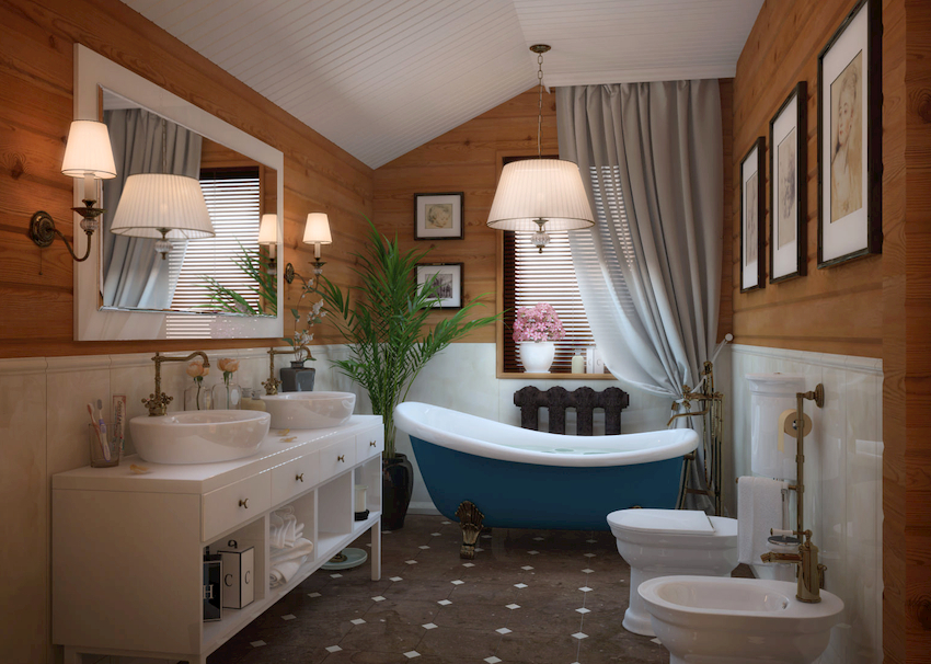 - Dimensiunile camerei. Este important ca după instalarea tuturor obiectelor, golurile dintre ele să permită mișcarea liberă prin cameră. Mobilierul clasic de baie din lemn masiv este cel mai bine lăsat pentru decorarea camerelor mari din case private sau apartamente mari.