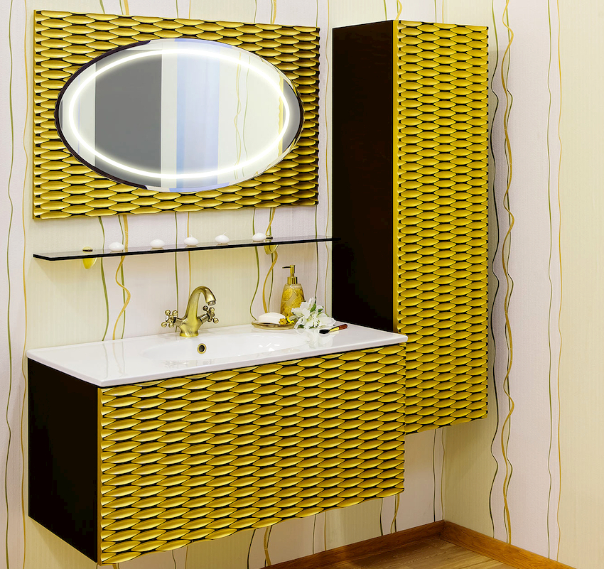 O soluție practică pentru băi este acoperirea cu smalț sau lac, care se distinge printr-un luciu atractiv și o bună rezistență la schimbările de temperatură și umiditate. Finisajele lăcuite pot fi adaptate pentru a se potrivi oricărui stil. Astfel de mobilier va fi mai ieftin decât furnirul sau produsele din acril.