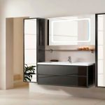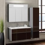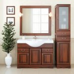 Într-o încăpere mică, cea mai bună și cea mai profitabilă soluție este un dulap suspendat care nu ocupă spațiu în podea, ci folosește spațiul disponibil pe pereți. Un dulap de baie suspendat cu oglindă, pe lângă un design spațios frumos, va umple camera cu volum. În acest caz, este important să organizați o iluminare bună, astfel încât să fie convenabil să folosiți oglinda. Soluția ideală este o lampă încorporată deasupra oglinzii sau din lateral.