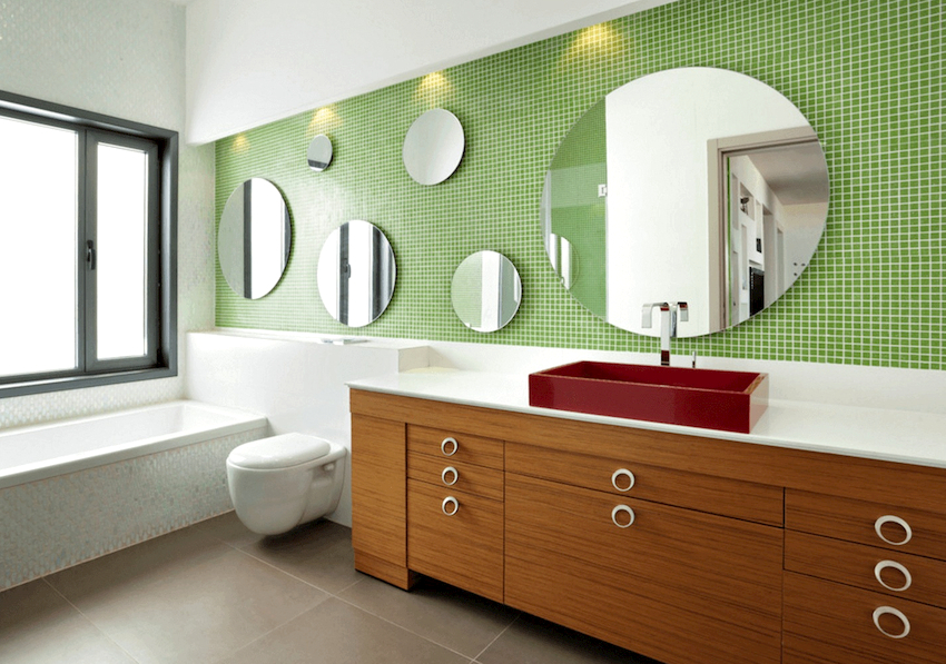 Sfaturi utile! Indiferent de dimensiunea băii, trebuie să existe o oglindă în ea, care nu numai că va ajuta la îngrijirea de sine, ci va umple încăperea cu lumină și volum suplimentar.
