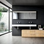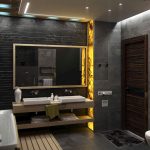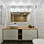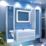 Nu puteți plasa doar oglinda într-un dulap mic deasupra chiuvetei, dar puteți instala și o oglindă mare la toată înălțimea dulapului de perete. Partea frontală a dulapului, care este o suprafață oglindită, va deveni punctul central al băii moderne. O altă opțiune convenabilă și practică este instalarea unui dulap glisant într-o baie cu uși glisante cu oglindă care nu necesită spațiu suplimentar pentru deschidere. Principalul avantaj al dulapului suspendat este absența contactului cu podeaua, unde umezeala este cel mai adesea reținută.