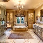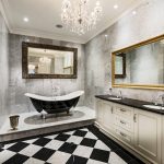 - Într-o cameră cu parametri mari, obiectele mici nu trebuie instalate. Pe o selecție de fotografii cu mobilier într-o baie care are mult spațiu liber, puteți vedea că dulapurile în miniatură și noptiere se pierd pur și simplu pe fundalul acestor zone. Prin urmare, urmează regula: o baie mare - mobilier dimensional.