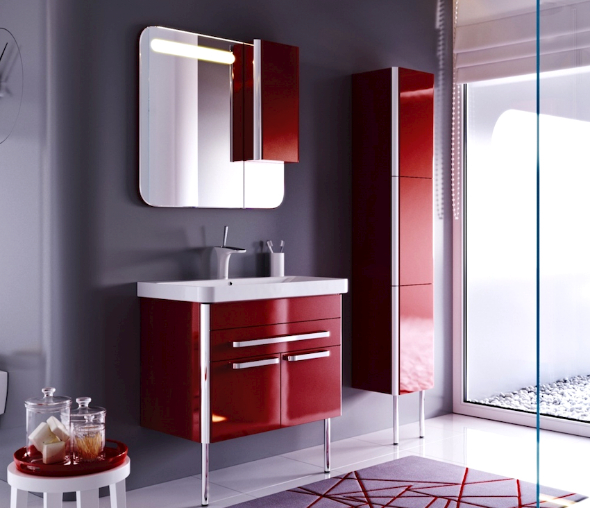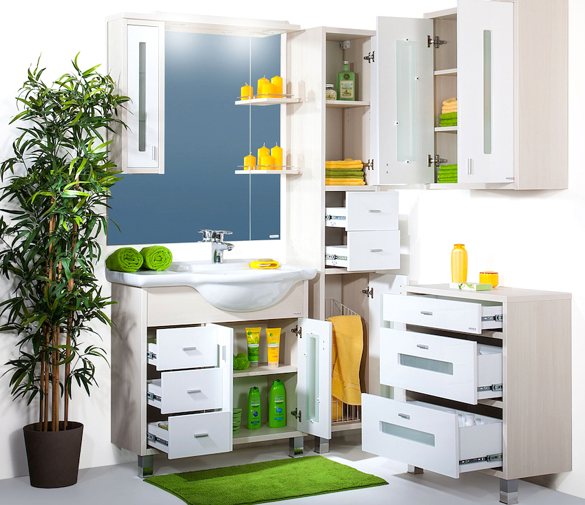 Mobilierul din baie vă va permite să aranjați frumos diverse produse cosmetice și chimice de uz casnic.