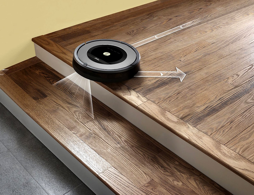 Infračervený snímač tiež zabraňuje pádu zariadenia z určitej výšky. V takom prípade sa vysielač nachádza pod spodnou časťou zariadenia a dáva mu signál, že pod ním nie je podlaha. V tejto dobe sa robotický vysávač otočí a pohybuje sa v opačnom smere.