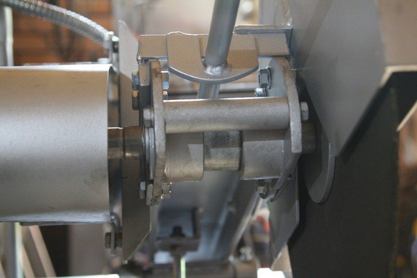 - Vyrába sa hriadeľ, na ktorom bude upevnená hnacia kladka a tiež bude nainštalovaný rezací kotúč. Jednotka je predmetom montáže a následnej inštalácie na kyvadle. V tomto prípade funguje pohyblivá horná časť konštrukcie ako kyvadlo, kde sú umiestnené rezný prvok a motor.
