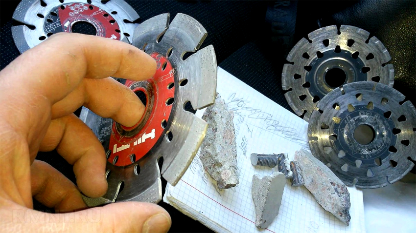 Na železobetón. Diamantová hrana je sektorová, disky majú značnú hrúbku.