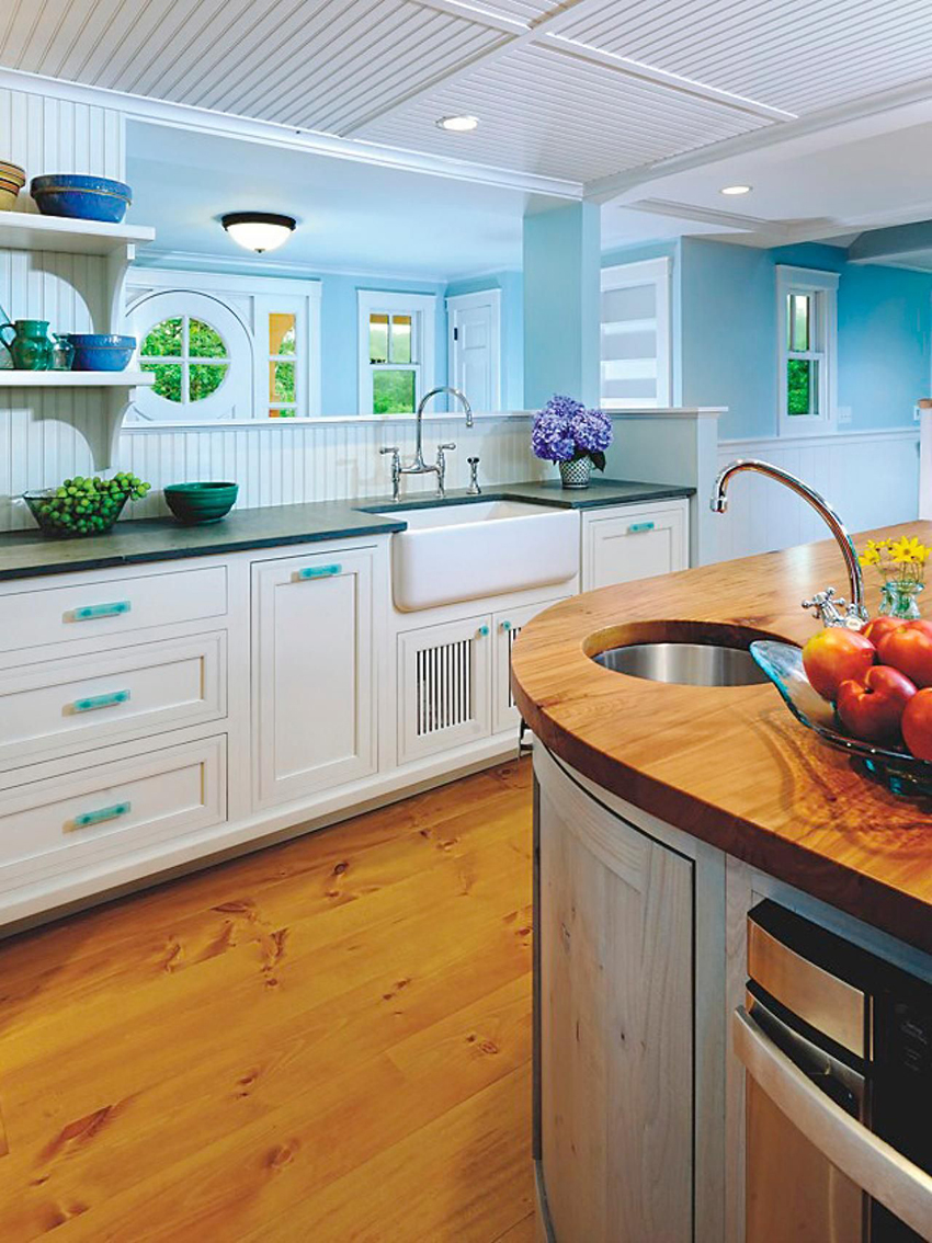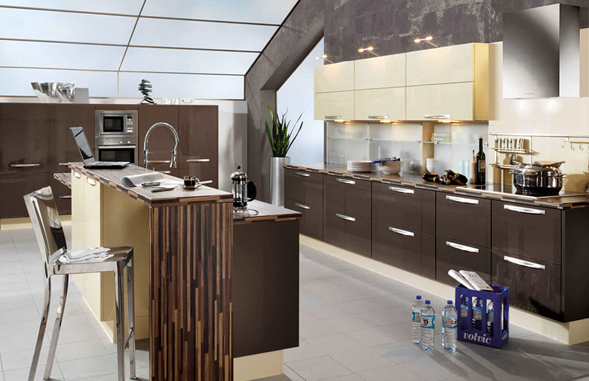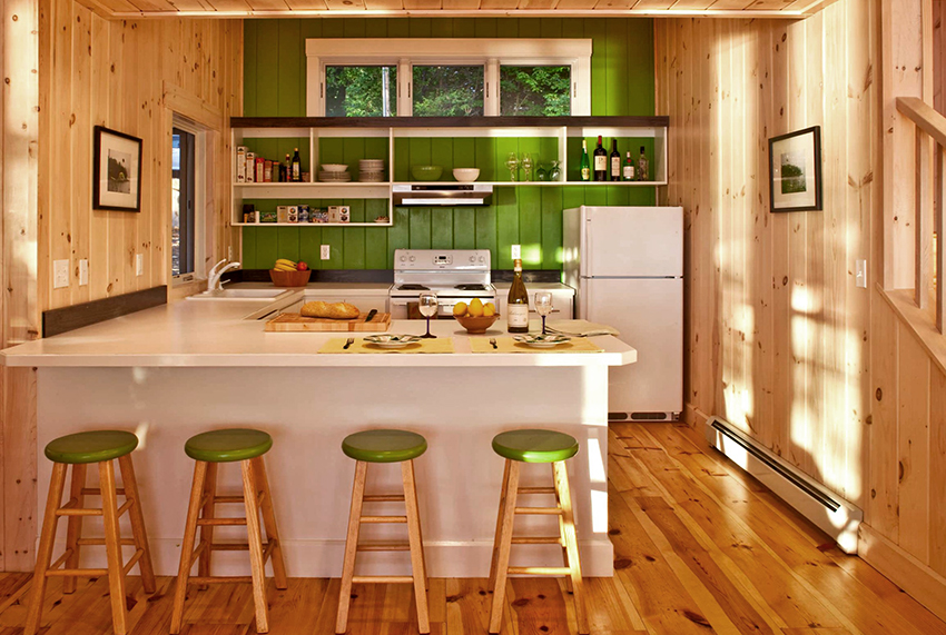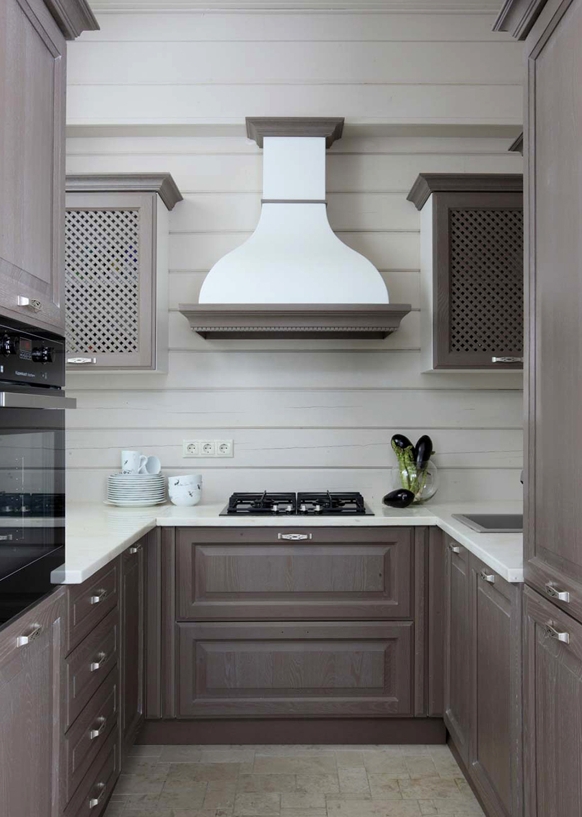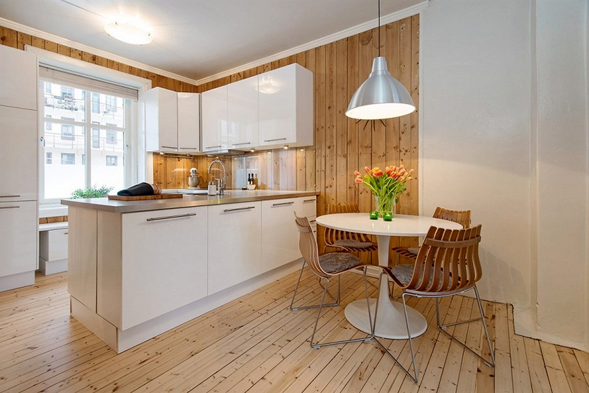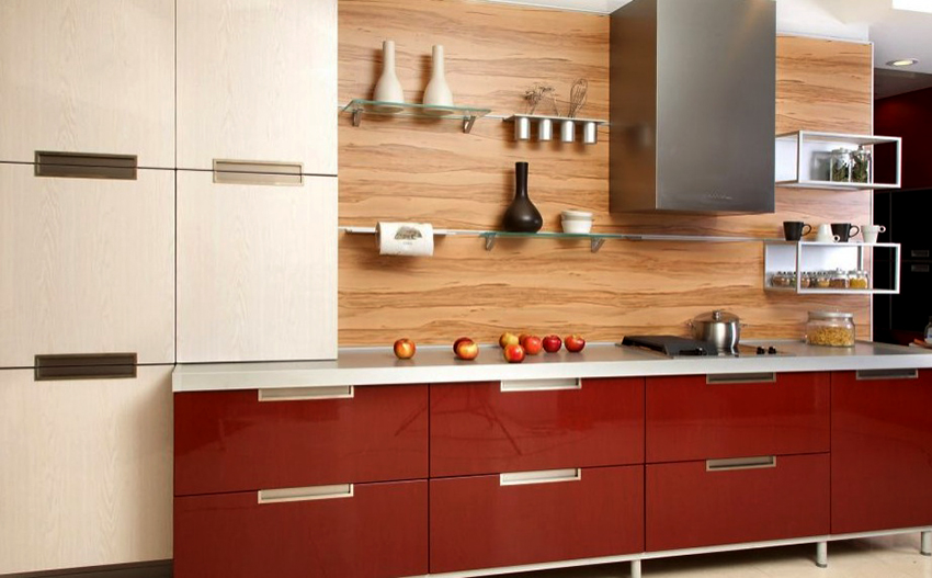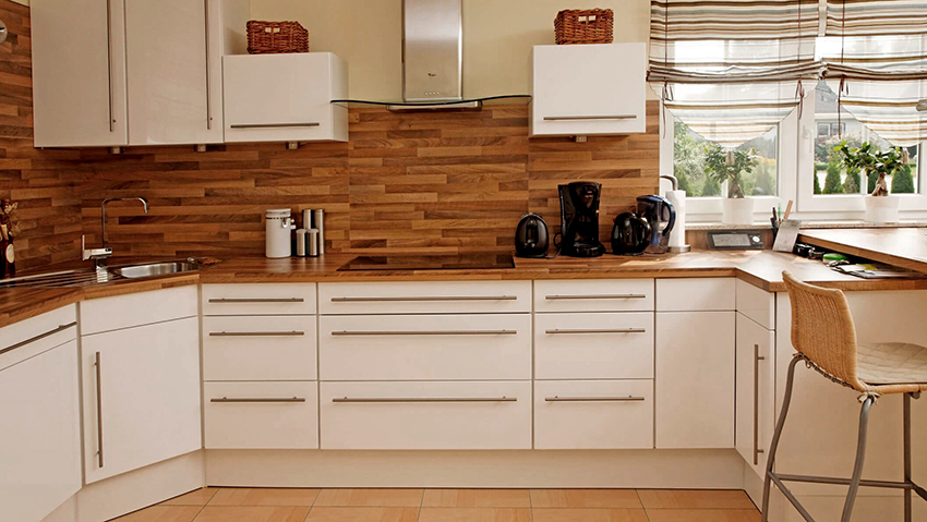 Po prvé, je to nepraktické, pretože materiál sa bojí vlhkosti a teplotných extrémov. Za takýchto podmienok bude drevo pokryté prasklinami, odlupuje sa a zdeformuje. Po druhé, prírodný materiál je veľmi horľavý. Tento typ povrchovej úpravy nie je najlepšou voľbou pre blízkosť plynového alebo elektrického sporáka.Po tretie, prírodné drevo je príliš drahé, takže je nahradené falošnými panelmi pre kuchyňu z rozpočtových materiálov, napríklad z laminovanej drevotriesky (postforming).