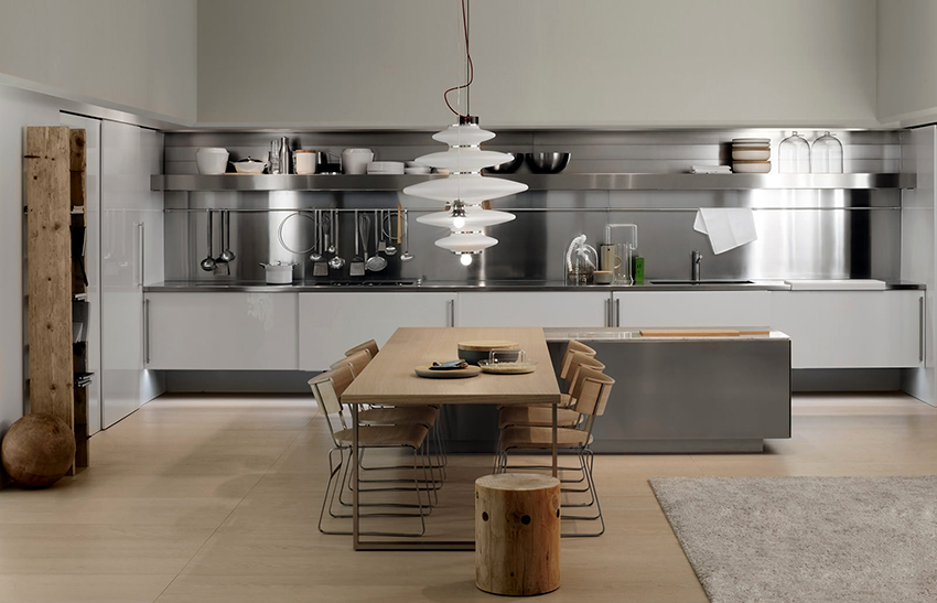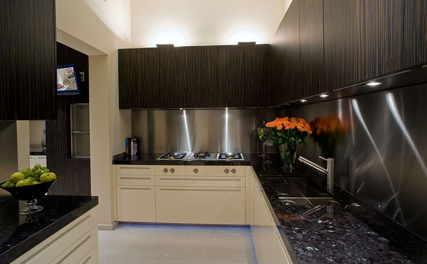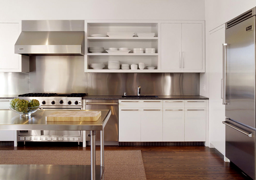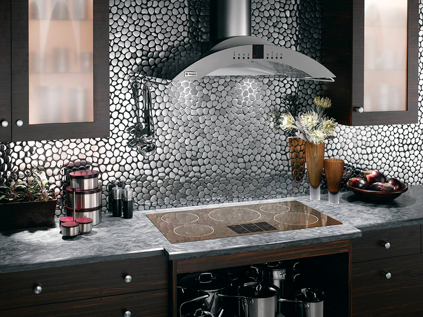 - 1.9 Výhody a nevýhody štýlových kovových kuchynských zásterov: oceľové panely