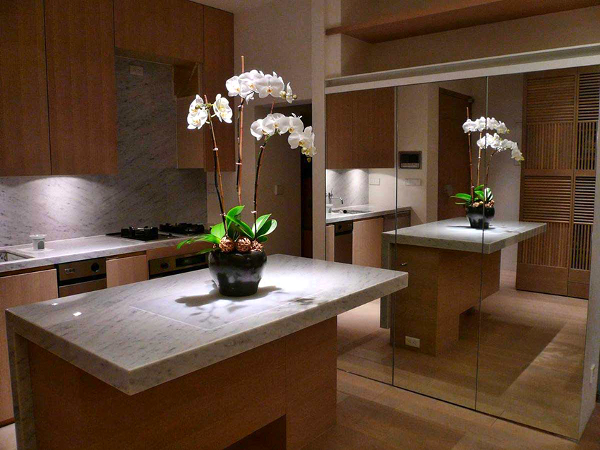 - Mramor nemožno nazvať praktickým materiálom: vďaka svojej pórovitej štruktúre tento kameň okamžite absorbuje farbiace kvapaliny, ako sú džúsy, víno, káva.