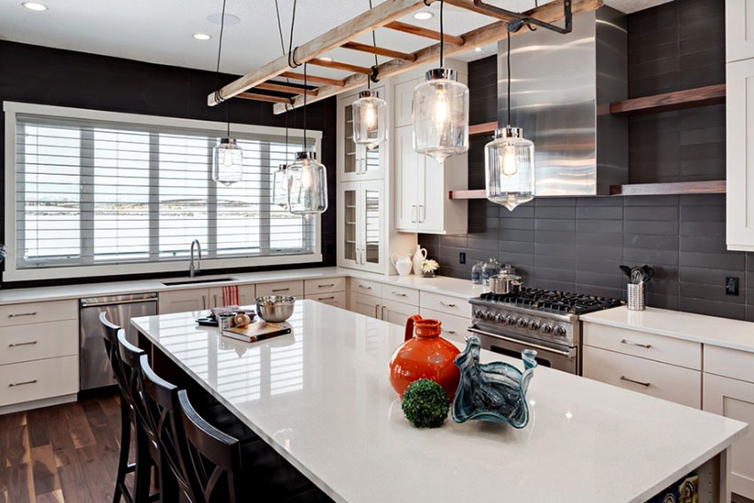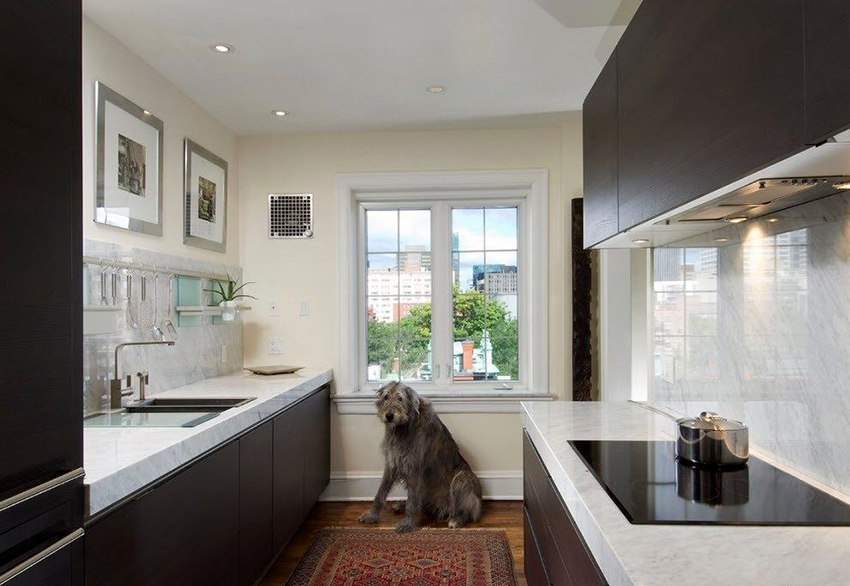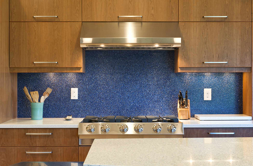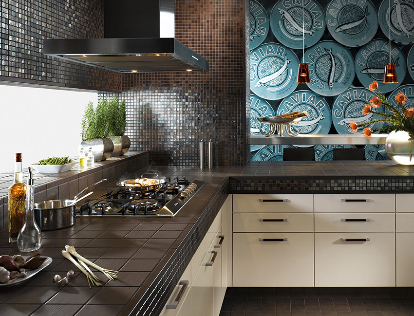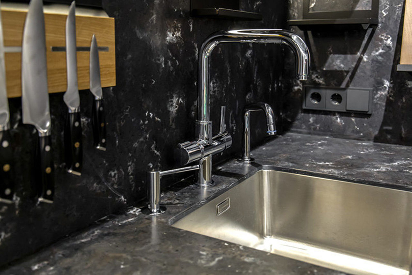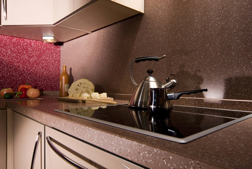 Užitočná rada! Ak v kuchyni nainštalujete tmavú zásteru z kremenca, vďaka pestrému povrchu na nej nebudú viditeľné škvrny a stopy mastnoty.