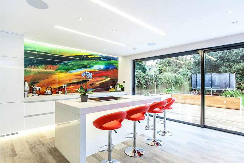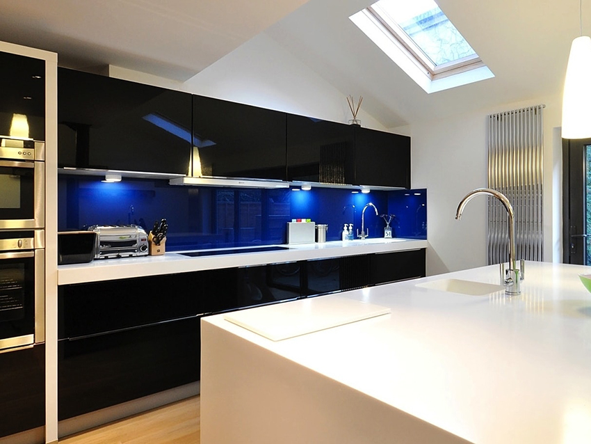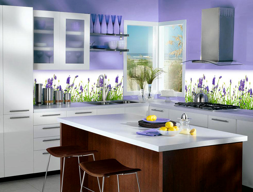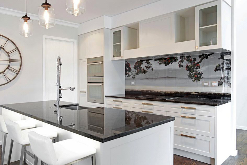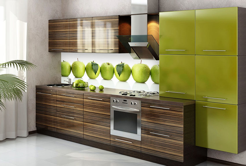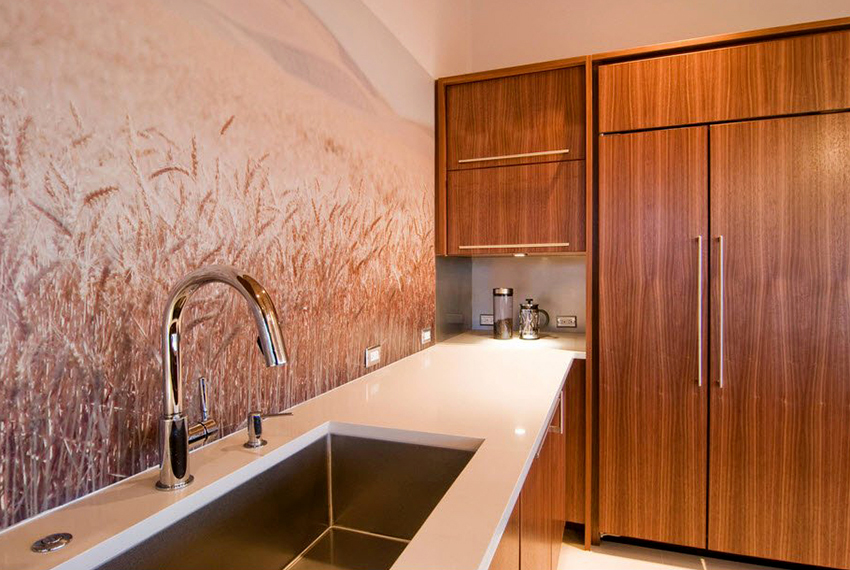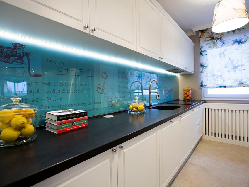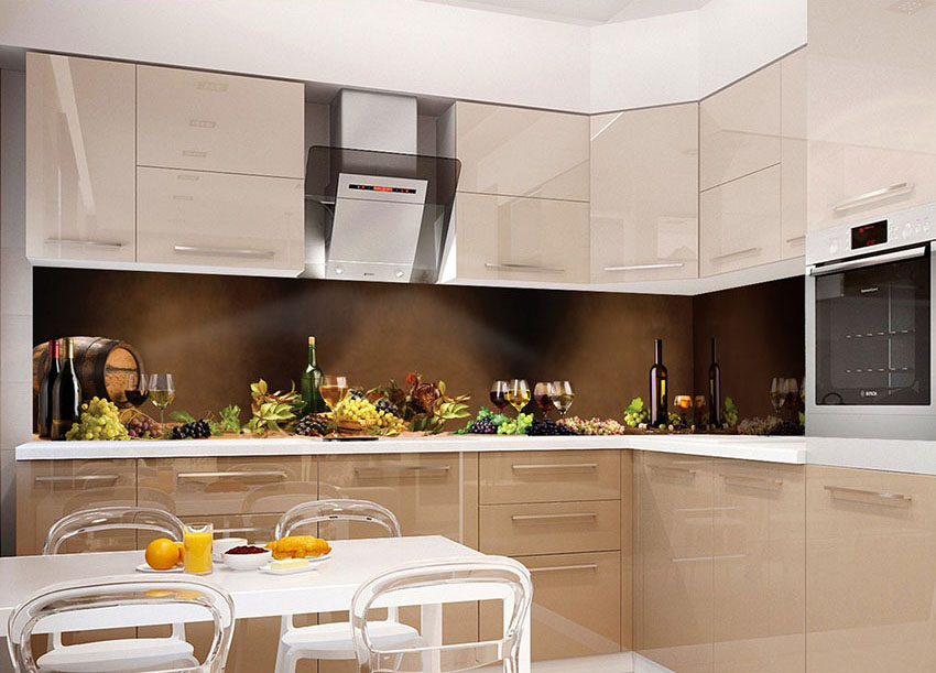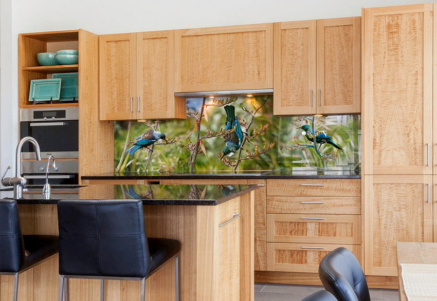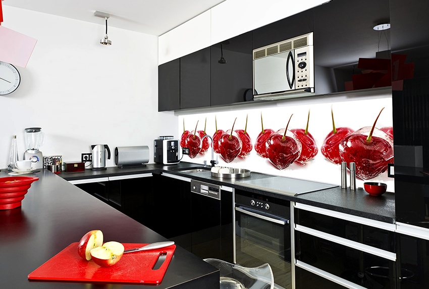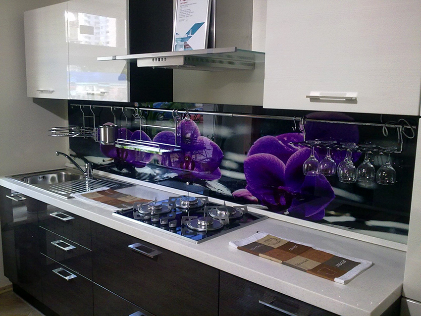 - Panely majú nekonečné možnosti pre návrh kuchyne. Fototlač na zásteru vám umožní preniesť pod sklo všetky obrázky a fotografie vhodnej veľkosti a kvality, ktoré sa kupujúcemu páčia.