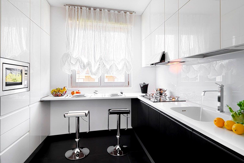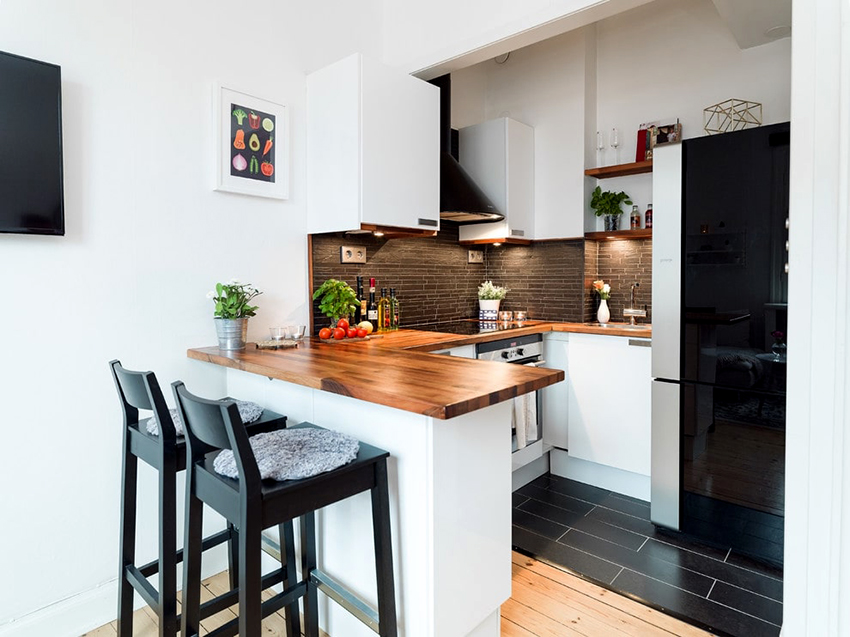 Tmavá zástera nie je najpraktickejšou možnosťou pre kuchyňu. Na jeho povrchu budú viditeľné kvapky vody a prach. Na druhej strane mastné škvrny nie sú na čiernej povrchovej úprave také viditeľné, najmä ak nie je materiál pevný. Ak je pre kuchyňu vybraná zástera jasnej farby alebo s farebným vzorom, potom by mal byť interiér miestnosti vyzdobený v neutrálnych farbách.
