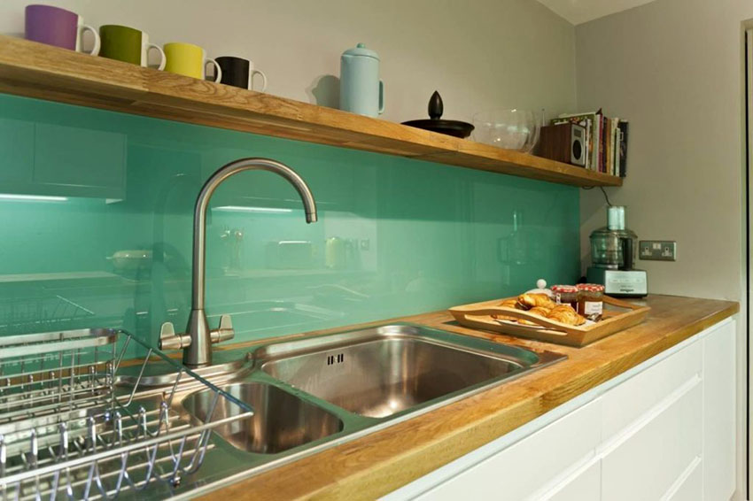Táto možnosť dokončovania pre pracovnú oblasť sa začala využívať pomerne nedávno. Napriek tomu početné fotografie sklenených zásterov v kuchyni dokazujú, aký úspešný a relevantný je tento dizajn. Opláštenie steny medzi headsetom so skleneným povrchom sa nazýva skinale. Vďaka svojim výhodným vlastnostiam môže povrchová úprava z hľadiska pohodlia a praktickosti konkurovať dlaždiciam.