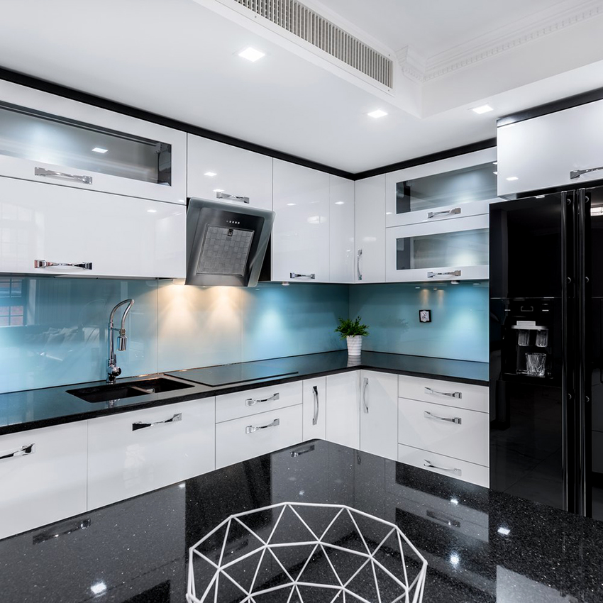 - Brúsenie skla počas jeho inštalácie je nemožné, pretože rozmery kuchynskej zástery sú individuálne a sú stanovené vo fáze výroby.