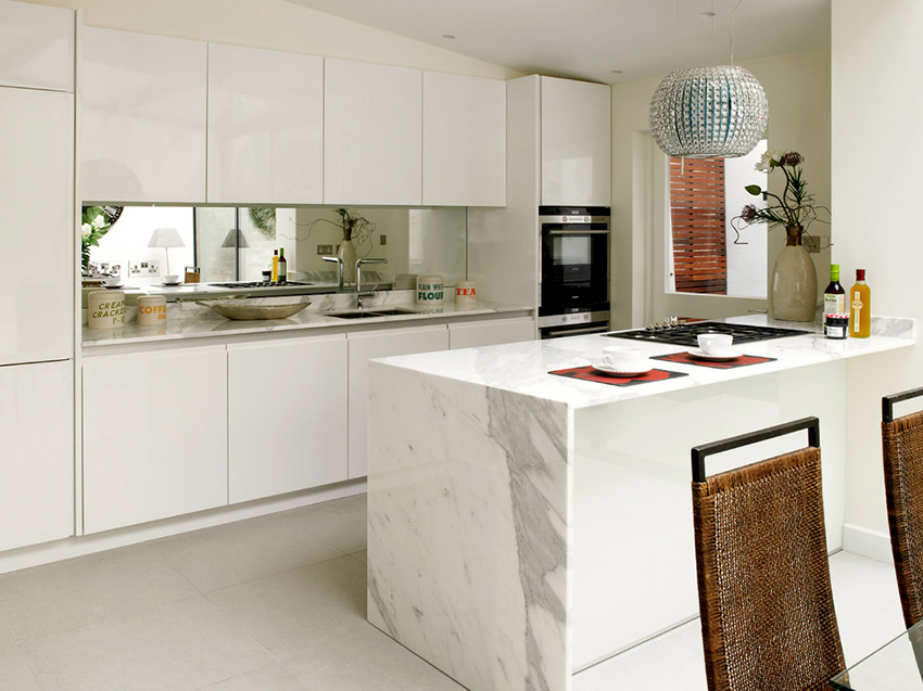 Výhody a nevýhody mramorového backsplash v kuchyni