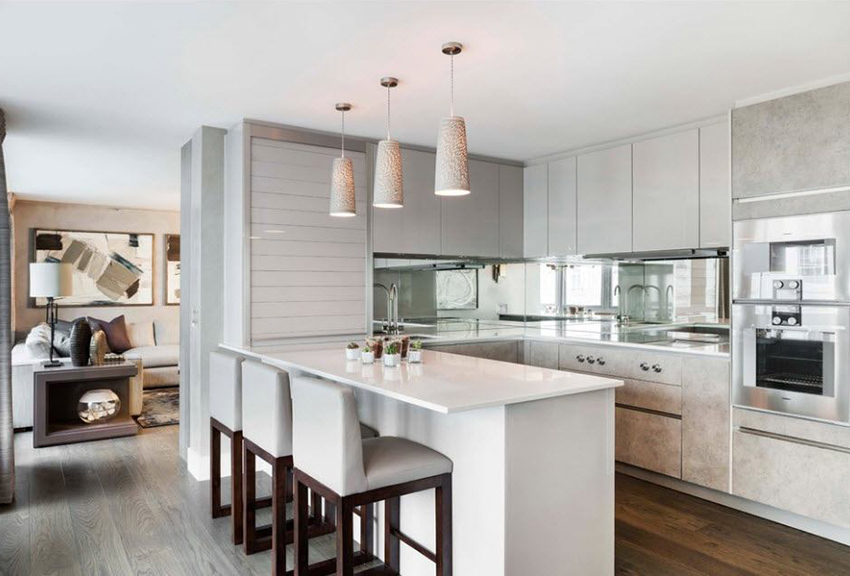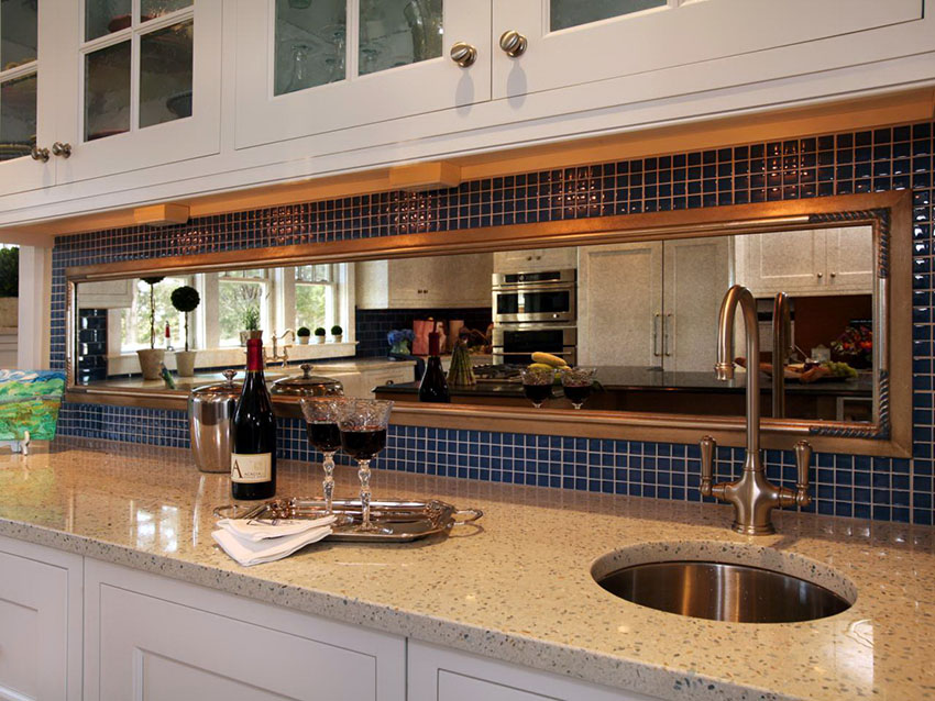 Ak chcete miestnosť vyplniť svetlom a oslnením, je stále lepšie uprednostniť iné typy záster s lesklým povrchom, napríklad sklenené panely alebo dlaždice s lesklým povrchom. Zrkadlá sú vhodné pre kuchyne, ktoré sa zriedka používajú na zamýšľaný účel.