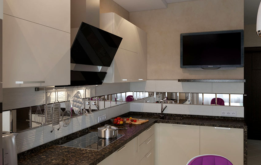 - 1.5 Zrkadlové zástery pre kuchyňu: fotografie a funkcie použitia