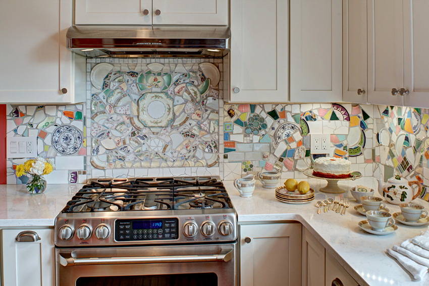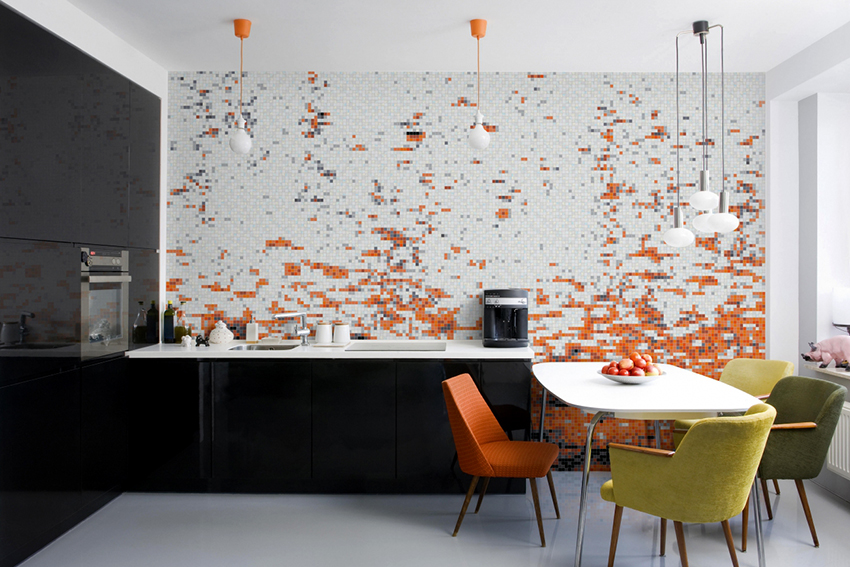 - 1.7 Neobvyklý dizajn dlaždíc na zástere v kuchyni: fotografie mozaikových výrobkov