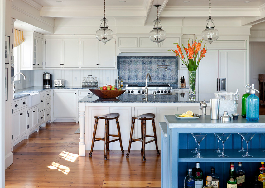 Majitelia bývania na pobreží môžu z kamienkov pripraviť zásteru. Táto povrchová úprava vyzerá neobvykle a originálne, zatiaľ čo náklady budú minimálne. Samozrejme, budete musieť stráviť určitý čas zbieraním stavebného materiálu, ale výsledok bude úžasný.
