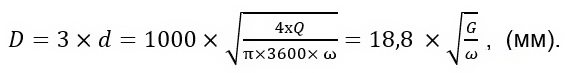 - Vzorec určuje priemer (D) na základe maximálneho prietoku zberača s nízkymi stratami (výpočty podľa údajov z pasu kotla):