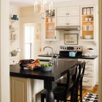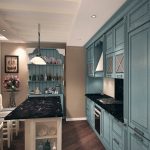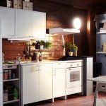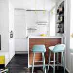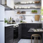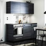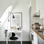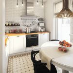 Kuchynský nábytok by mal byť vyrobený v pokojných, neutrálnych farbách. Za ideálne riešenie sa považujú lesklé fasády, ktoré odrážajú svetlo a iluzórne zväčšujú miestnosť. Dodatočná vzdušnosť malej miestnosti bude poskytnutá zavesením sklenené police, na ktorom je vhodné posedieť pri obsluhe stola alebo pohároch na víno.