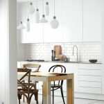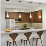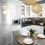Na osvetlenie kuchyne sa najčastejšie používajú bodové svetlá, ktoré sú umiestnené po celom obvode stropu so zameraním na pracovný priestor. Svietidlá je možné zabudovať aj priamo do nábytku. Jedálenský kút je možné osvetliť nástennou nástennou lampou alebo malým lustrom, ktorý zodpovedá zvolenému štýlu.