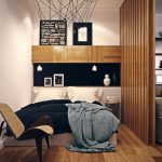 Netradičné umiestnenie nábytku pozdĺž stien je dobrou metódou na uvoľnenie priestoru navyše. Môžete použiť rohové medziposchodia, cez izbu umiestniť pohovku, ktorá môže miestnosť navyše zonovať. Takéto neobvyklé usporiadanie nábytku je možné vidieť na fotografii interiéru jednoizbových bytov o rozlohe 40 m².