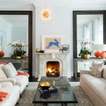 Ak chcete v blízkosti pohovky vytvoriť ďalšie teplo a pohodlie, mali by ste položiť obyčajný ľahký koberec. Živosť a veselosť môžete miestnosti dodať pomocou svetlých dekoratívnych vankúšov, farebných obrazov, rodinných fotografií, podlahových svietidiel z ušľachtilej látky a podlahových váz konzervatívneho tvaru.