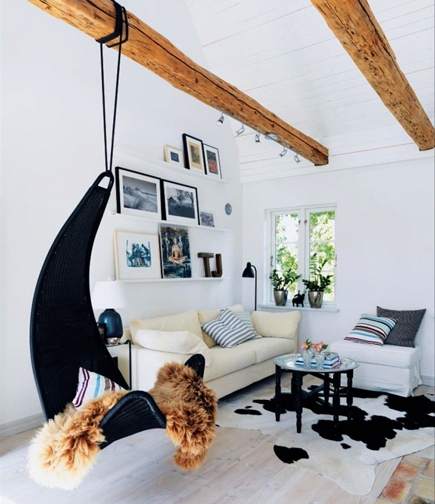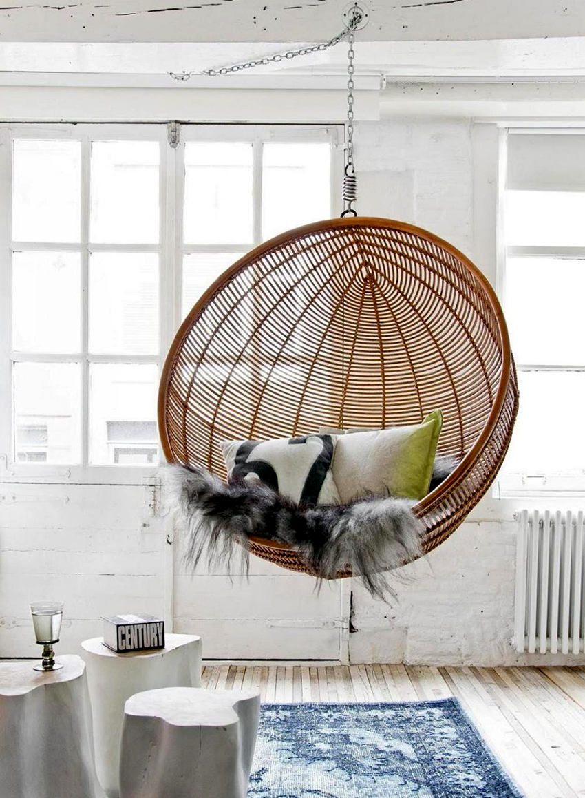 มันน่าสนใจ! เก้าอี้แขวนตัวแรกปรากฏขึ้นเมื่อกลางศตวรรษที่แล้วในเดนมาร์กและเดิมใช้เพื่อตกแต่งพื้นที่สวน แต่แล้วพวกเขาก็เริ่มทำการดัดแปลงดังกล่าวซึ่งวางไว้ในอพาร์ตเมนต์เล็ก ๆ ได้สำเร็จ