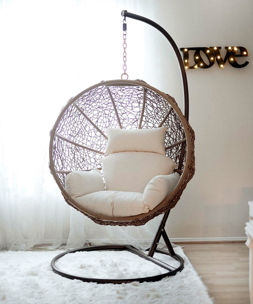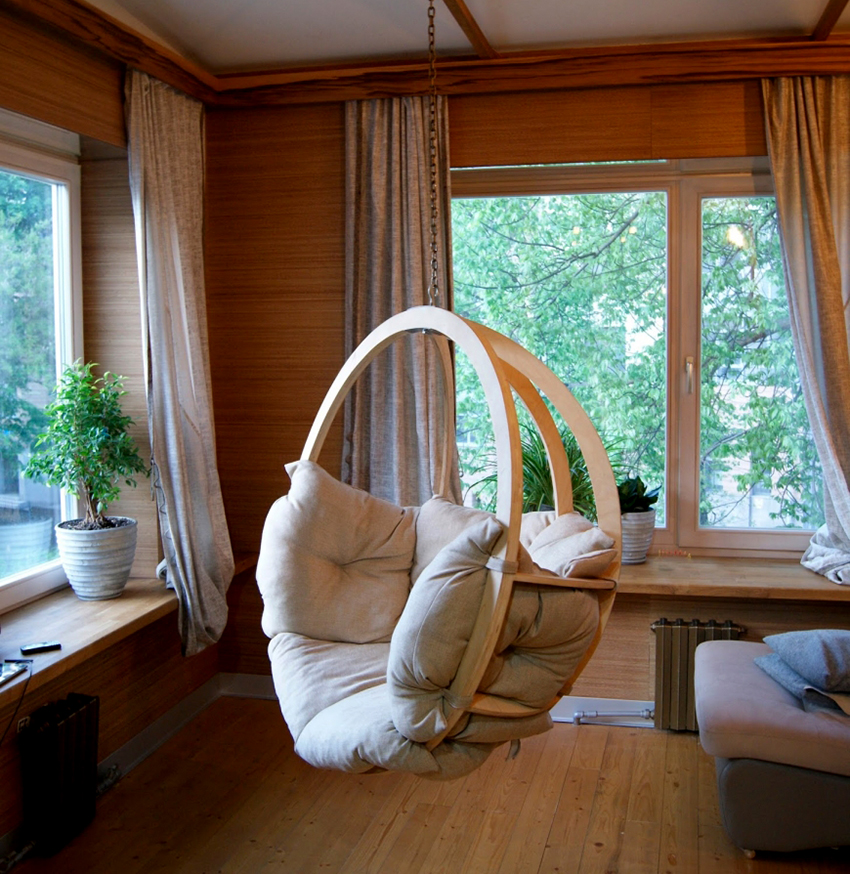 การเพิ่มเติมเดิมในการตกแต่งภายในหรือภายนอกของที่อยู่อาศัย แม้แต่เฟอร์นิเจอร์ที่สวยงามและใหญ่โตที่ทำจากไม้เนื้อแข็งจากธรรมชาติก็ยังเป็นเรื่องน่าเบื่อสำหรับหลาย ๆ การใช้เก้าอี้แขวนในการตกแต่งภายในจะ "เจือจาง" รูปลักษณ์ของบ้านและทำให้ไม่ได้มาตรฐานโดยเฉพาะอย่างยิ่งถ้าคุณแสดงจินตนาการและทำให้เฟอร์นิเจอร์มีลักษณะผิดปกติ