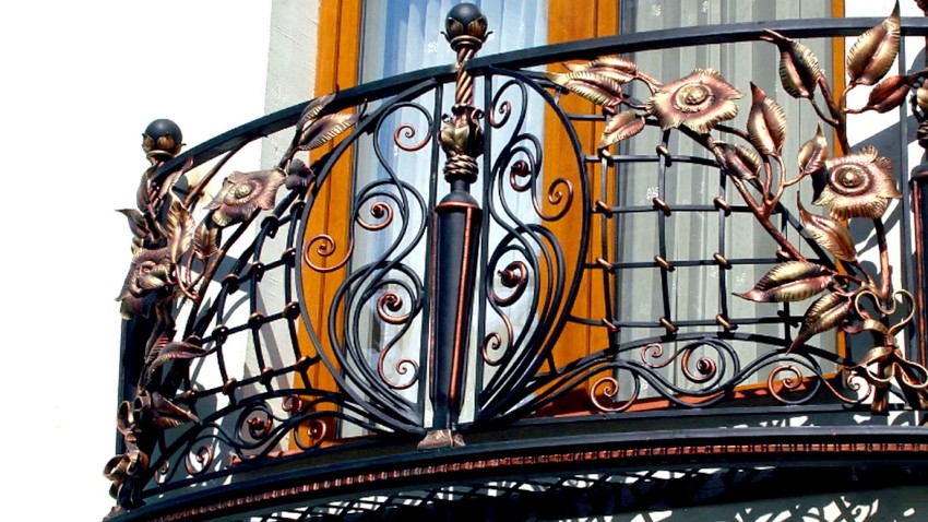 - โซลูชันการออกแบบที่หลากหลาย โลหะปลอมช่วยให้คุณสามารถใช้แนวคิดการออกแบบได้ คุณสามารถดูว่าการปลอมระเบียงฝรั่งเศสมีลักษณะอย่างไรในภาพ
