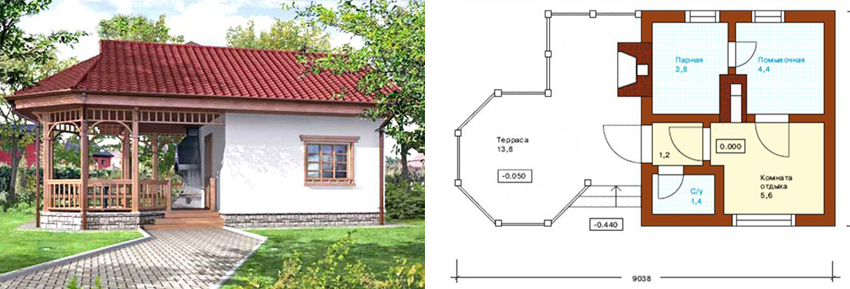 โครงการห้องอาบน้ำพร้อมศาลา: ภาพรวมของตัวเลือกที่ดีที่สุดสำหรับการก่อสร้าง