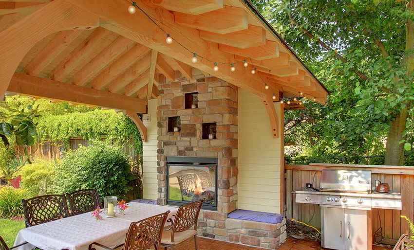 - ไม่จำเป็นต้องติดตั้ง B-B-Q โดยตรงในศาลานั่นเอง เพื่อจุดประสงค์นี้คุณสามารถแนบพื้นที่เล็ก ๆ อีกแห่งหนึ่งซึ่งจะมีหลังคา ดังนั้นทุกสิ่งที่คุณต้องการจะอยู่ใกล้ ๆ ในขณะที่ประหยัดพื้นที่