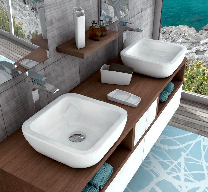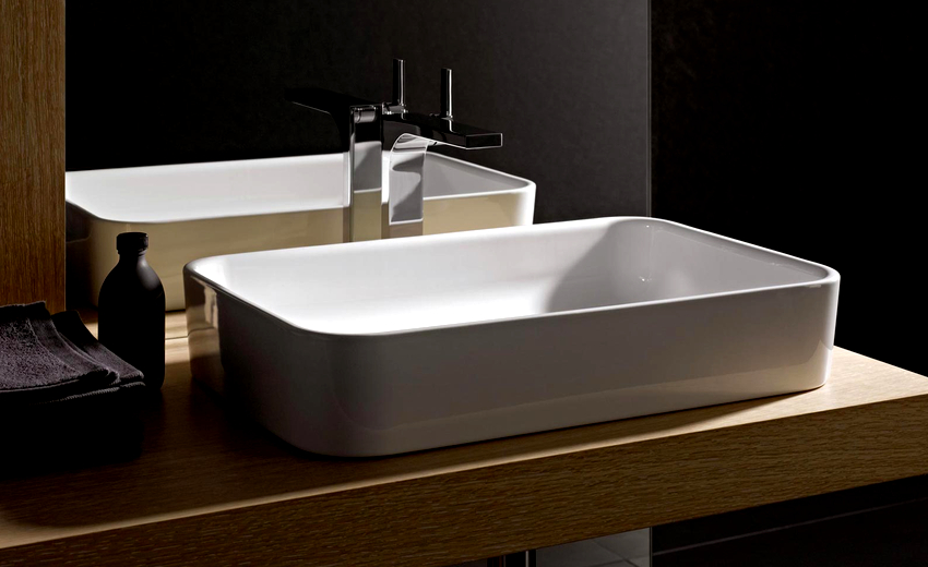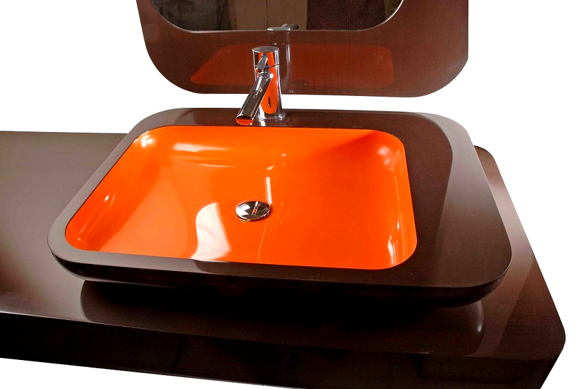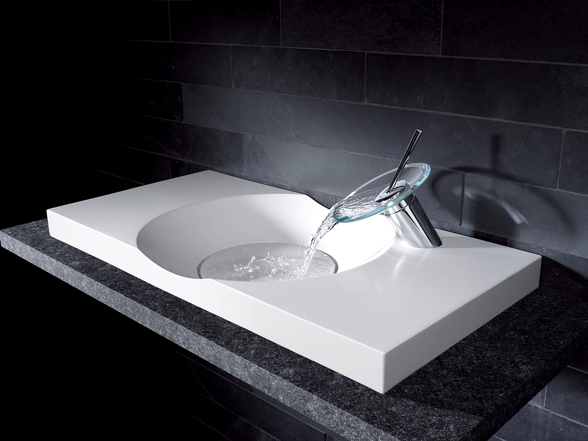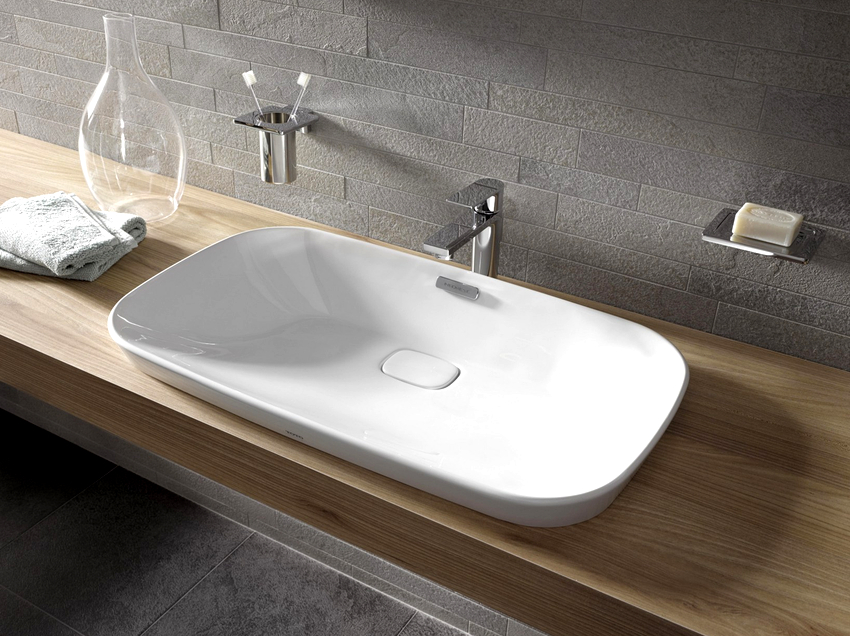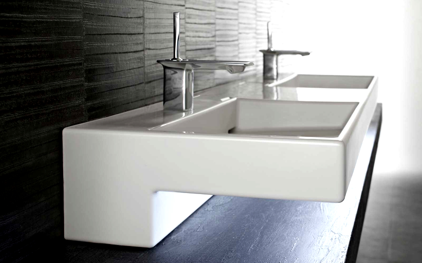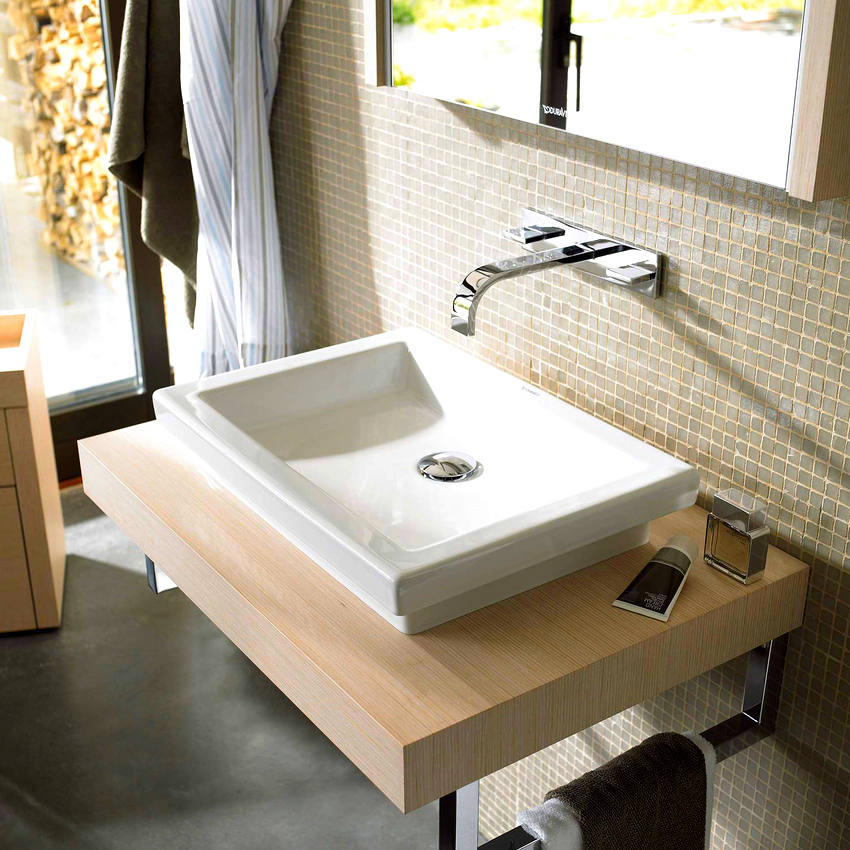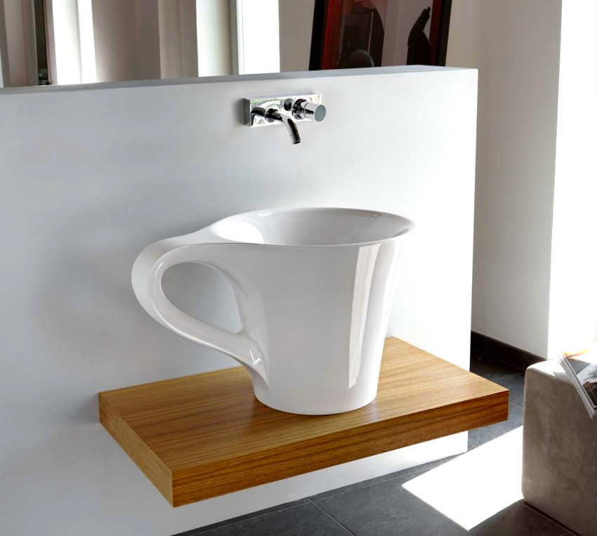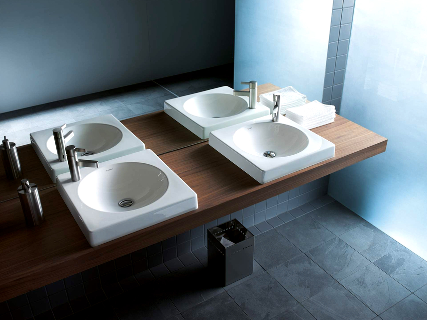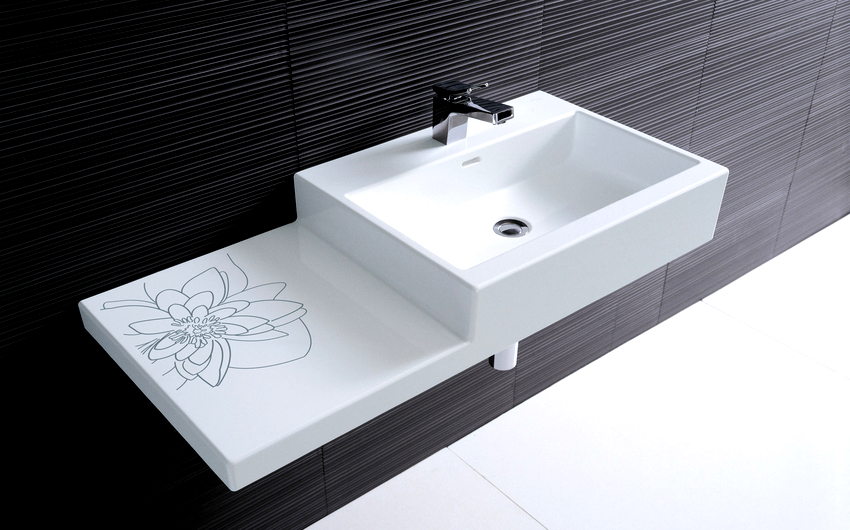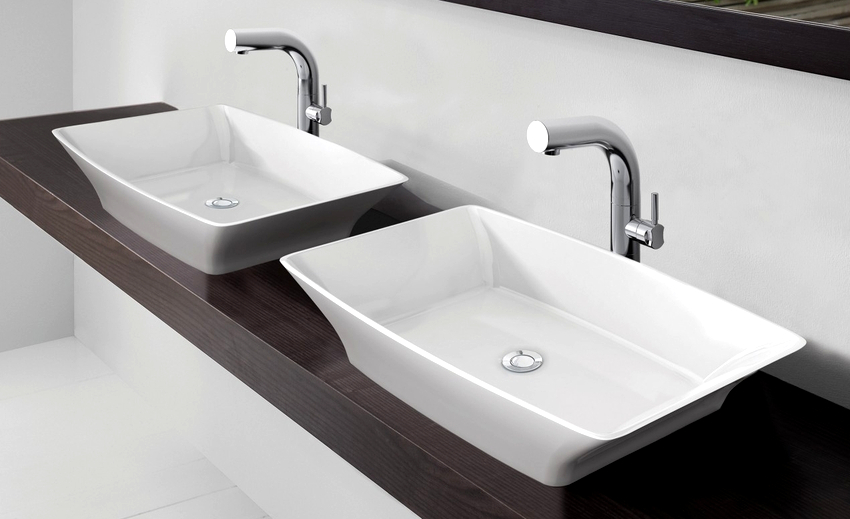 การออกแบบอาจเป็นได้ทั้งแสงการออกแบบตกแต่งและพูดน้อย แต่ค่อนข้างใหญ่ ลักษณะหลังมีอยู่ในอ่างล้างมือทรงสี่เหลี่ยมและสี่เหลี่ยมที่ทำจากหินเครื่องลายครามหรือไฟ