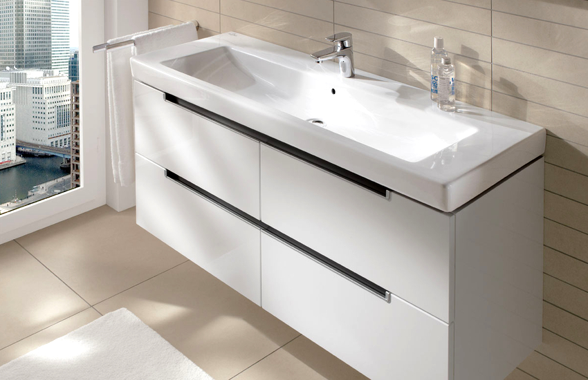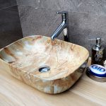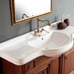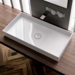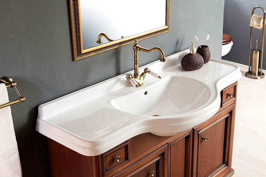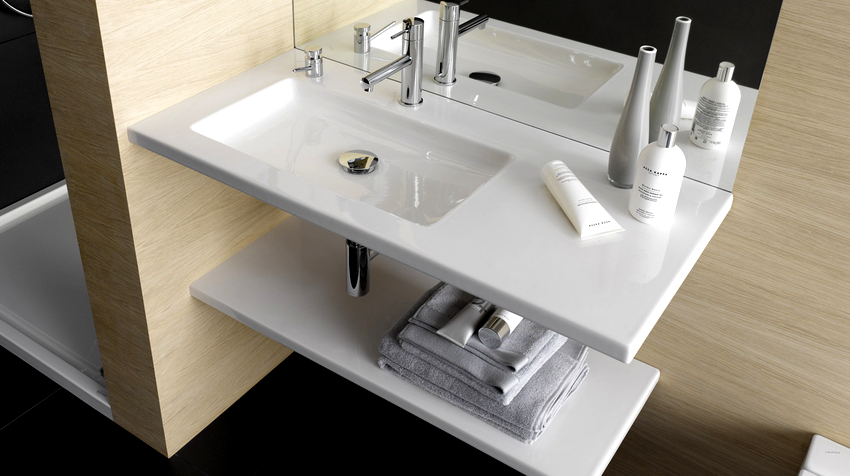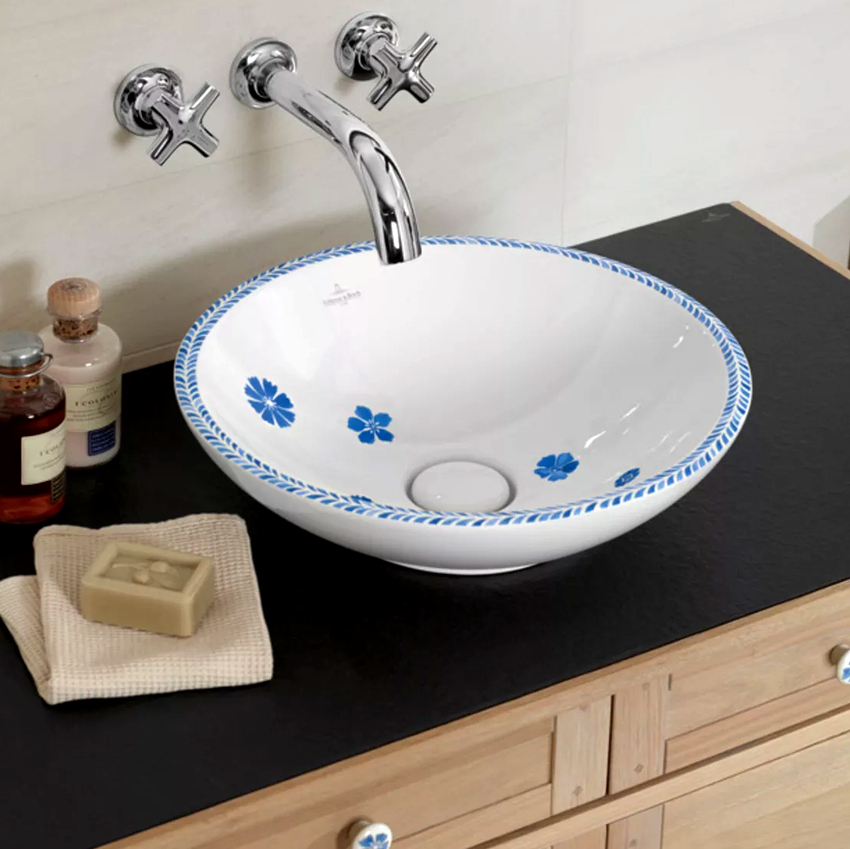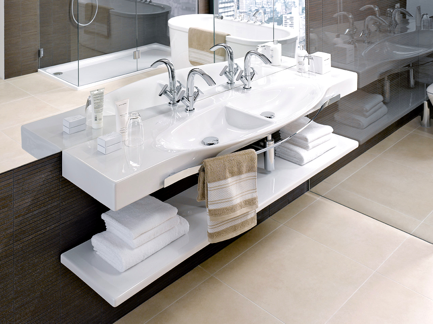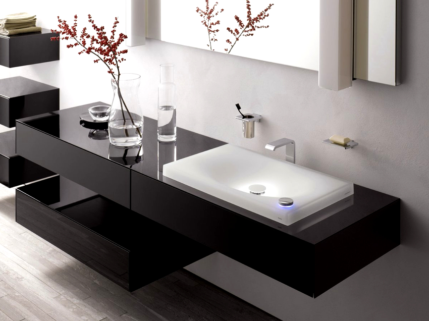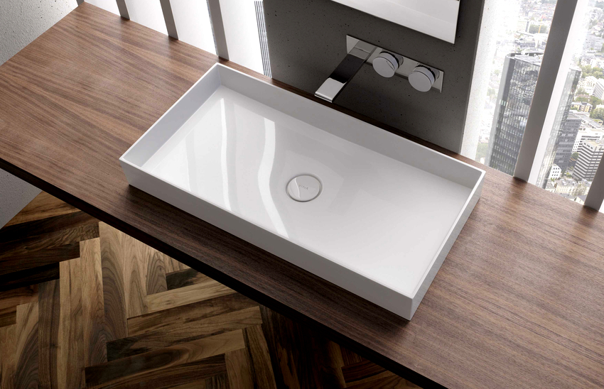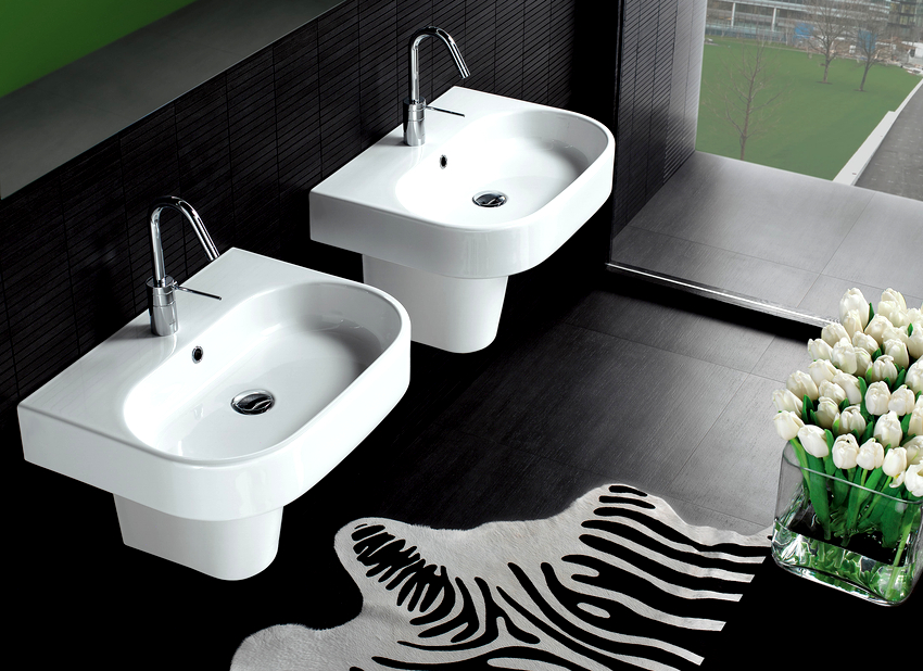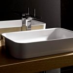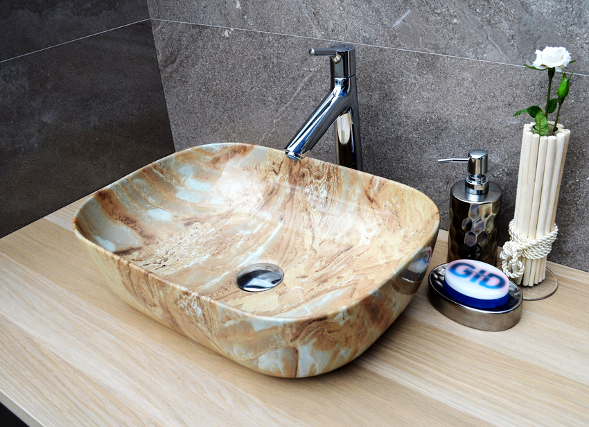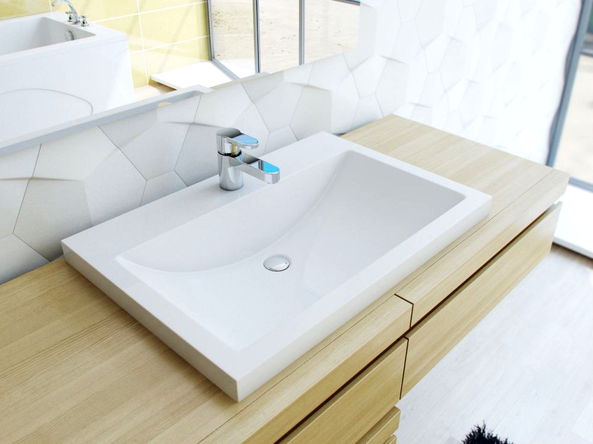 การออกแบบอาจเป็นได้ทั้งแสงการออกแบบตกแต่งและพูดน้อย แต่ค่อนข้างใหญ่ ลักษณะหลังมีอยู่ในอ่างล้างมือทรงสี่เหลี่ยมและสี่เหลี่ยมที่ทำจากหินเครื่องลายครามหรือไฟ