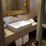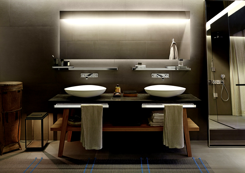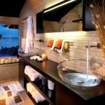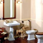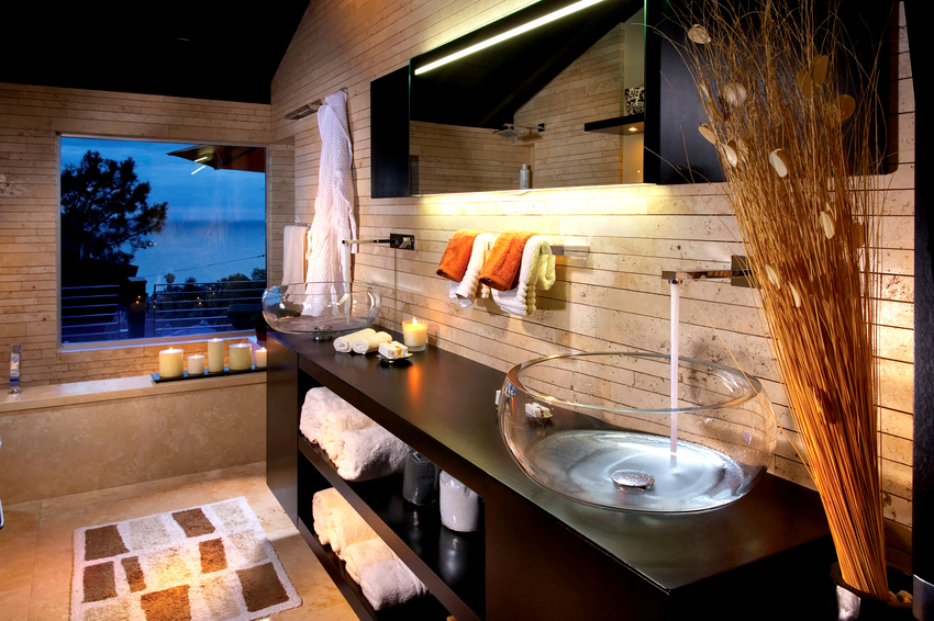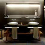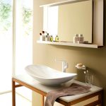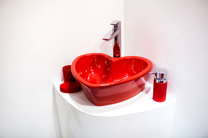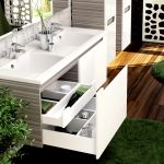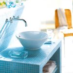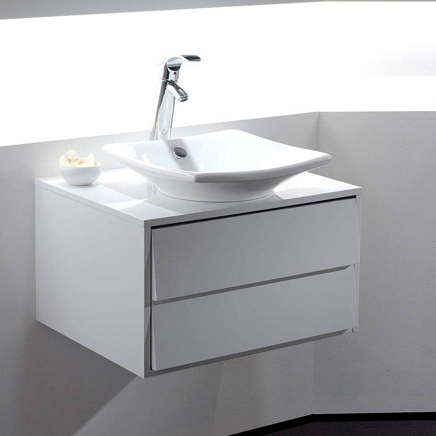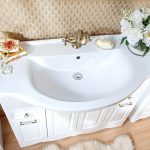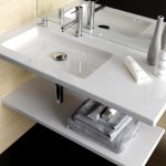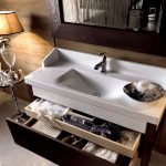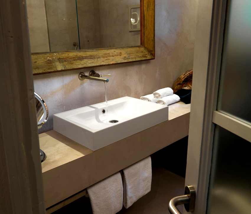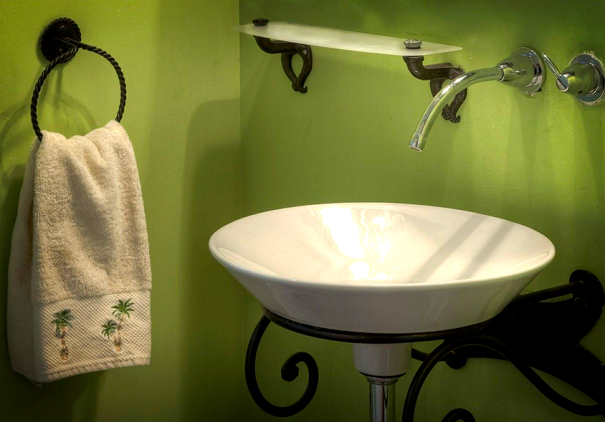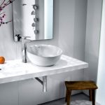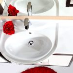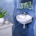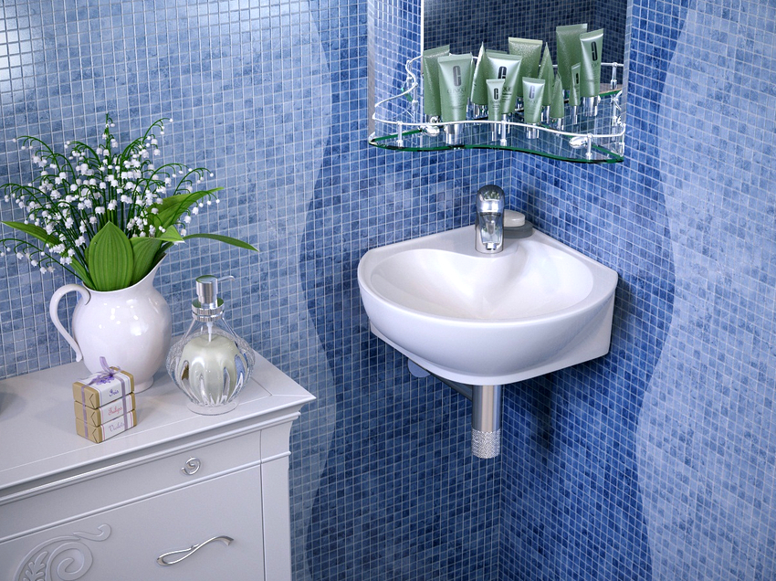 - อ่างล้างมือที่มีฐานสี่เหลี่ยมตั้งอยู่ที่มุมด้านใดด้านหนึ่งเป็นที่ยอมรับสำหรับห้องที่มีพื้นที่ว่างเพียงพอ