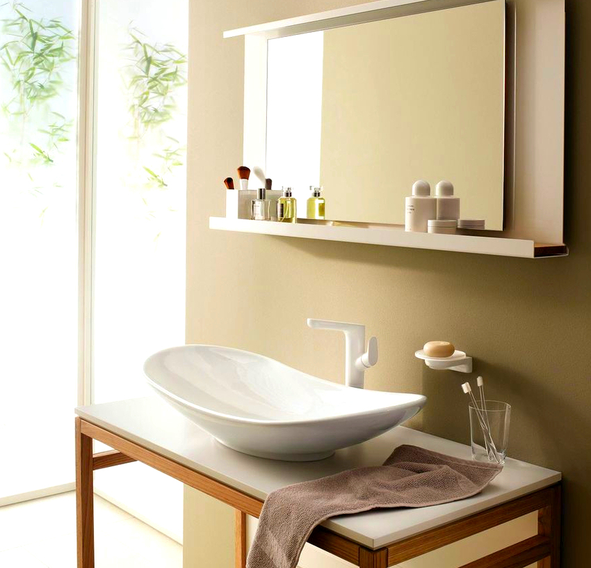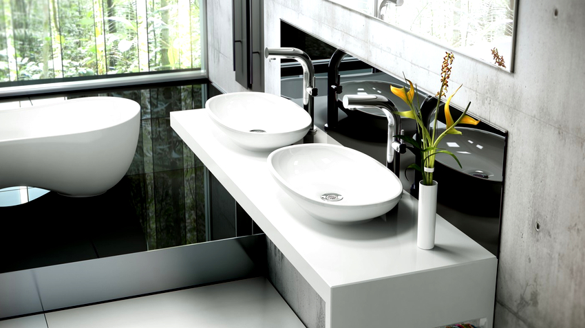 นอกจากนี้ยังเป็นที่น่าสังเกตว่าการติดตั้งอ่างล้างจานเหนือศีรษะในห้องน้ำเป็นกระบวนการง่ายๆที่สามารถจัดการได้โดยไม่ต้องมีความรู้และทักษะพิเศษ พุ่มไม้จำนวนมากวางอยู่บนเคาน์เตอร์